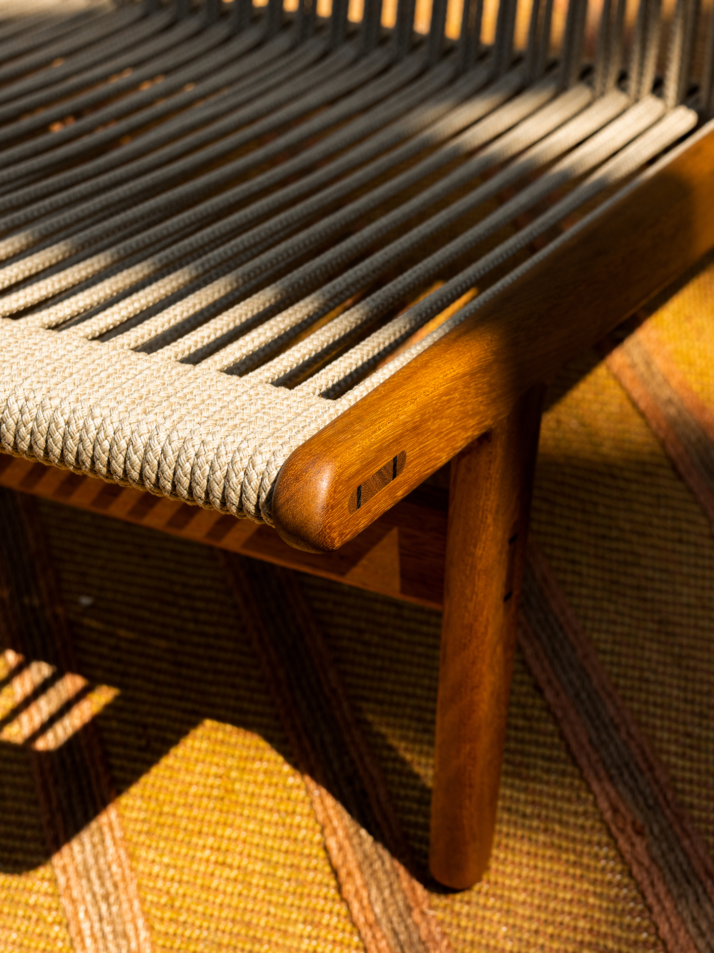 Διατίθεται κατόπιν παραγγελίας σε μασίφ ξύλο Iroko με φινίρισμα λαδιού και σχοινί σε melange Beige-Sand.