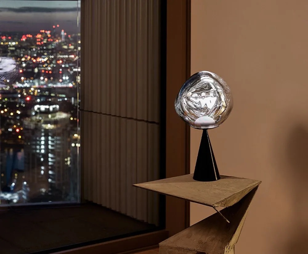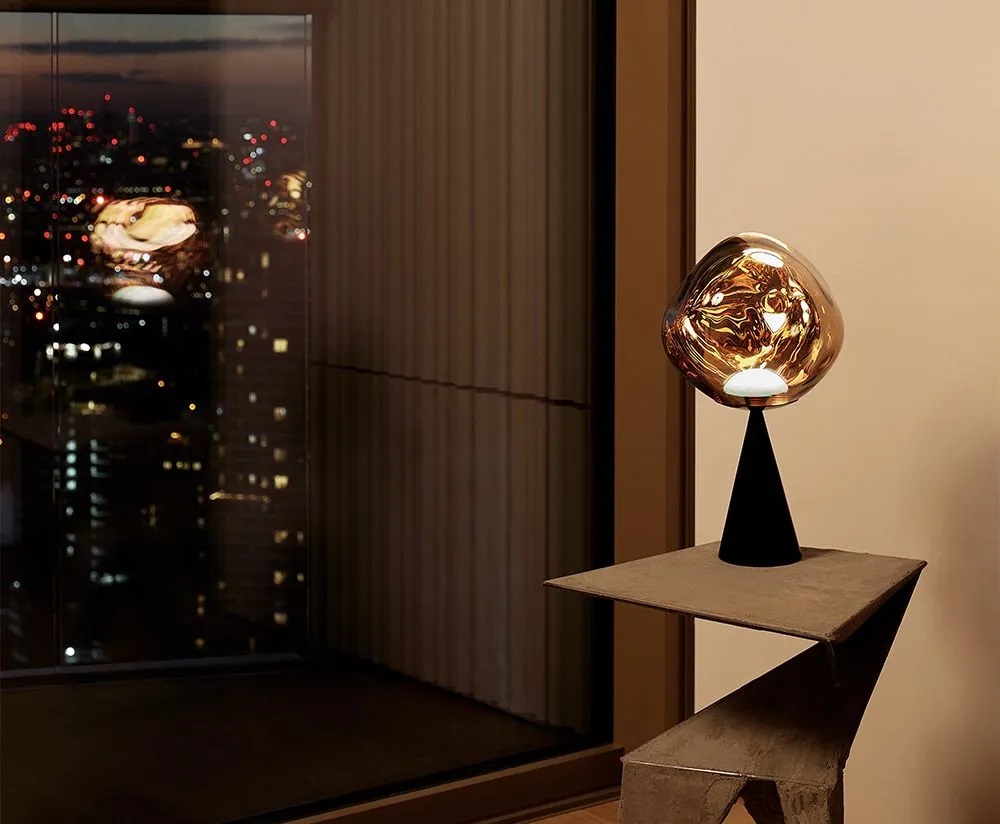 Δέν έχουμε ξαναδεί φωτιστικό σαν το Melt. Χάρη στην προσεγμένη κατασκευή του μοιάζει με γυαλί που λιώνει και διαθλά το φώς με ακανόνιστες επιφάνειες και μορφή που φαίνεται διαφορετική απο κάθε οπτική γωνία. Όταν είναι σβηστό, η επιφάνειά του γίνεται καθρέφτης που αντανακλά υπέροχα τον περιβάλλοντα χώρο.