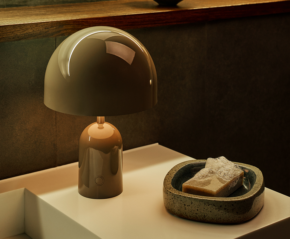 Παίρνοντας το όνομά του από ένα κλασικό σχήμα θόλου, το Bell είναι μια άσκηση μινιμαλισμού. Η υπεργυαλισμένη επιφάνεια επιτρέπει στο Bell να αντικατοπτρίζει τα χρώματα και τα χαρακτηριστικά του περιβάλλοντός του, ενώ ένας κρυφός διαχύτης παράγει τον απαλό φωτισμό του. Η επαναφορτιζόμενη φορητή έκδοση, προσφέρει έως και 9 ώρες διάρκεια ζωής της μπαταρίας.