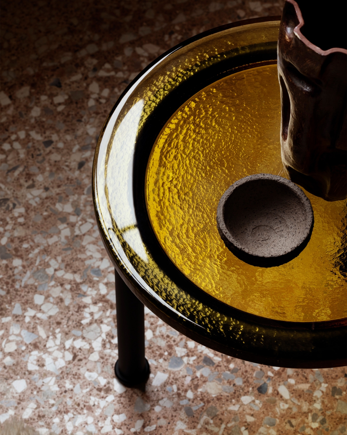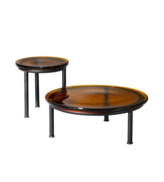 Τα τραπεζάκια σαλονιού Zigo είναι κατασκευασμένα από χυτευμένο γυαλί, μια τεχνική που συγκεντρώνει όλη τη δύναμη του χρώματος και του ίδιου του υλικού σε ολόκληρη την επιφάνεια. Ομόκεντροι κύκλοι αναδεικνύονται από ένα μινιμαλιστικό design, παίζοντας με τις διαφάνειες του χυτευμένου γυαλιού και τα μεταλλικά πόδια αγγίζουν το έδαφος με μια ασυνήθιστη απαλότητα, δίνοντας την αίσθηση της έλλειψης βαρύτητας.
