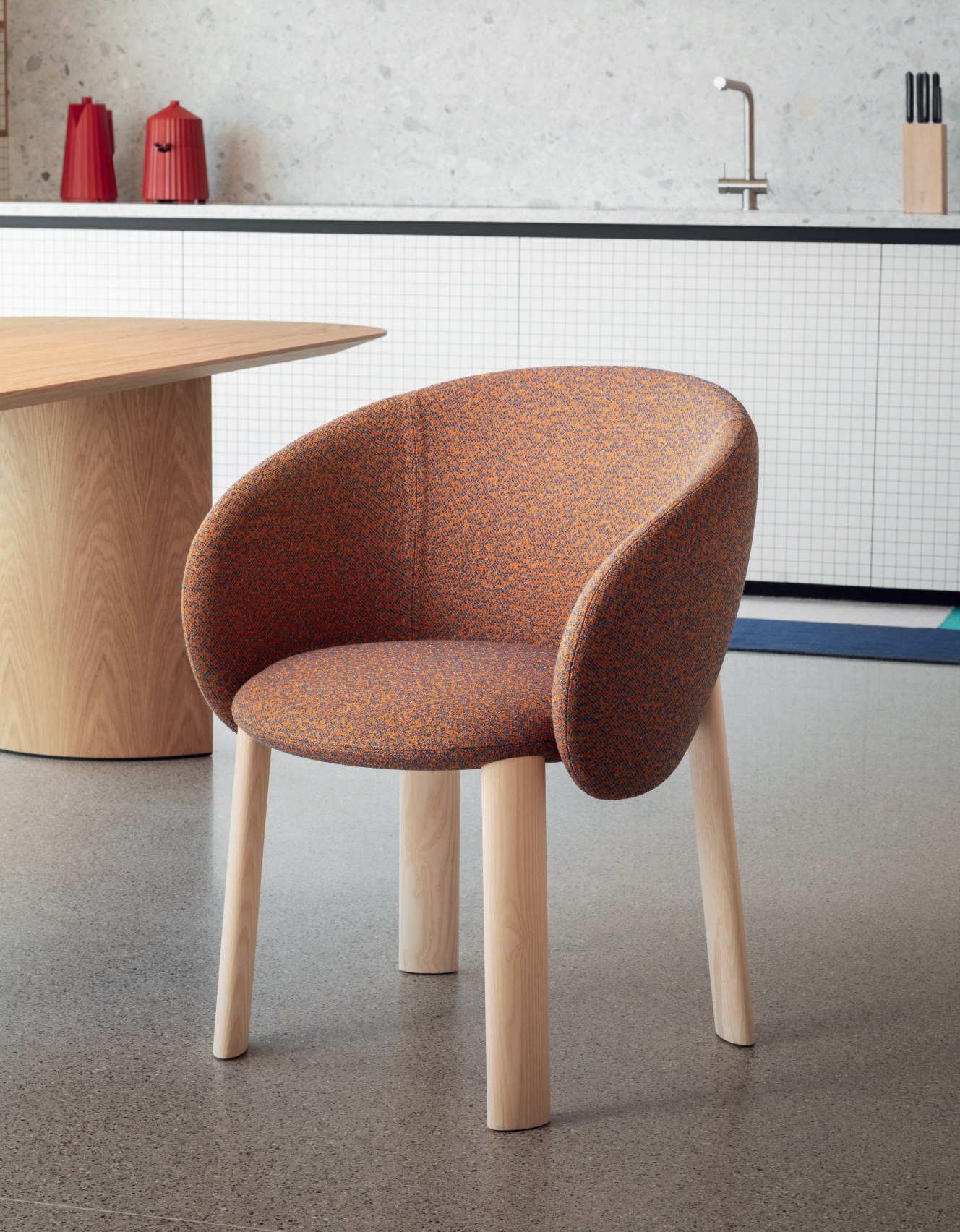 Στην έκδοση Nebula Wood διατίθεται με ξύλινα πόδια σε φυσική ή μαύρη φλαμουριά και κέλυφος επενδεδυμένο με ύφασμα σε μεγάλη ποικιλία χρωμάτων.