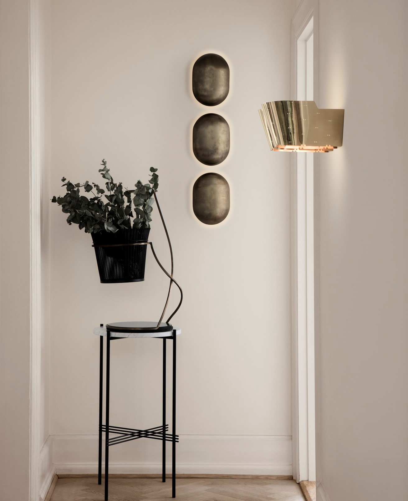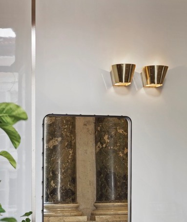 Το επιτοίχιο φωτιστικό 9464, που σχεδιάστηκε στις αρχές της δεκαετίας του 1950 από τον Paavo Tynell, είναι ένα εξαιρετικό παράδειγμα του πώς ο Φινλανδός σχεδιαστής εξύψωσε τον φωτισμό σε μορφή τέχνης. Το καθαρό, ανάγλυφο, ορείχαλκινο αμπαζούρ, προσδίδει έναν αέρα κομψότητας με το διακριτικό χαρακτηριστικό του Tynell το σχέδιο της διάτρητης διπλής κουκίδας, σε συνδυασμό με τις οδοντωτές άκρες, καθιστώντας το επιτοίχιο φωτιστικό 9464 ελκυστικό και αξιοθαύμαστο σε όλη του την απλότητα. Εξίσου επίκαιρο σήμερα όπως και όταν πρωτοπαρουσιάστηκε, ταιριάζει τέλεια στους σύγχρονους εσωτερικούς χώρους, προσθέτοντας ένα γλυπτικό αποτέλεσμα στον τοίχο, ενώ ταυτόχρονα δημιουργεί έναν χαλαρό αλλά πολύ εκλεπτυσμένο έμμεσο φωτισμό.