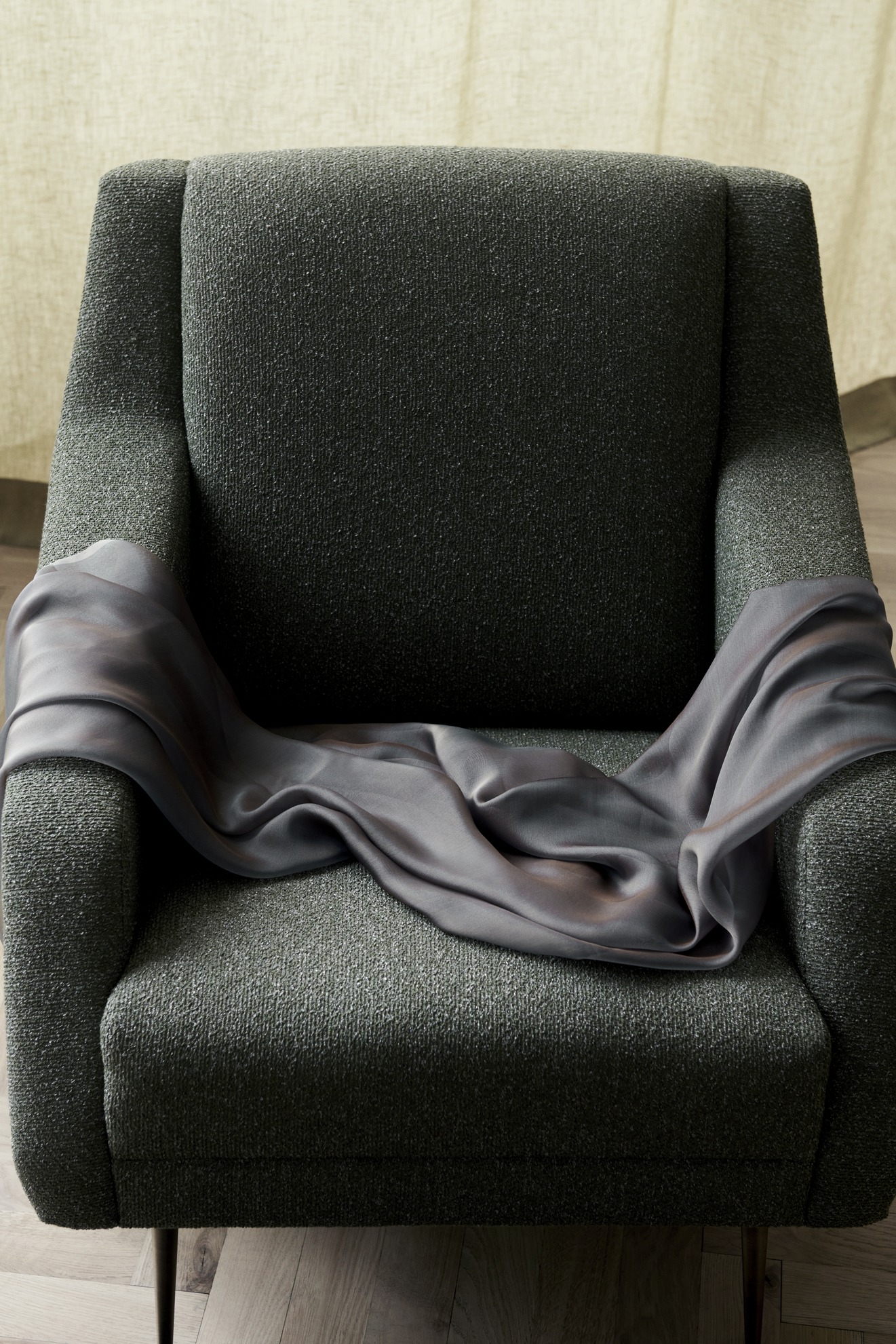 Διατίθεται κατόπιν παραγγελίας σε ποικιλία υφασμάτων, με μεταλλικά πόδια σε φινίρισμα μαύρο και antique brass ή ξύλινα high gloss λακαριστά πόδια σε αμερικανική καρυδιά, σημύδα και μαύρο φινίρισμα.