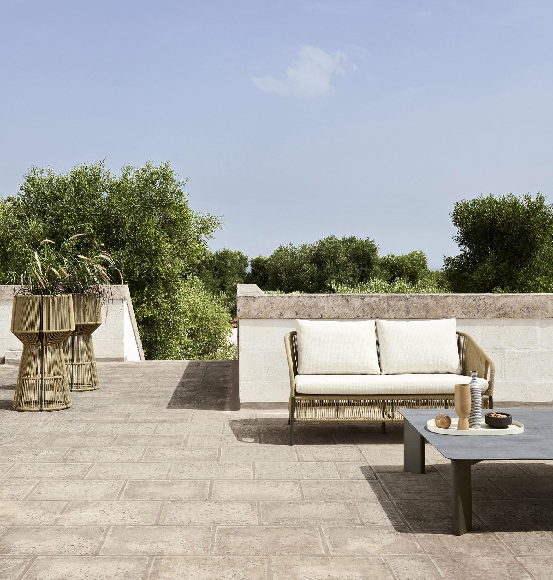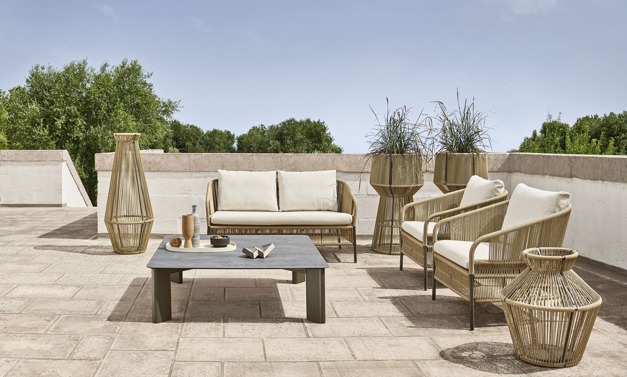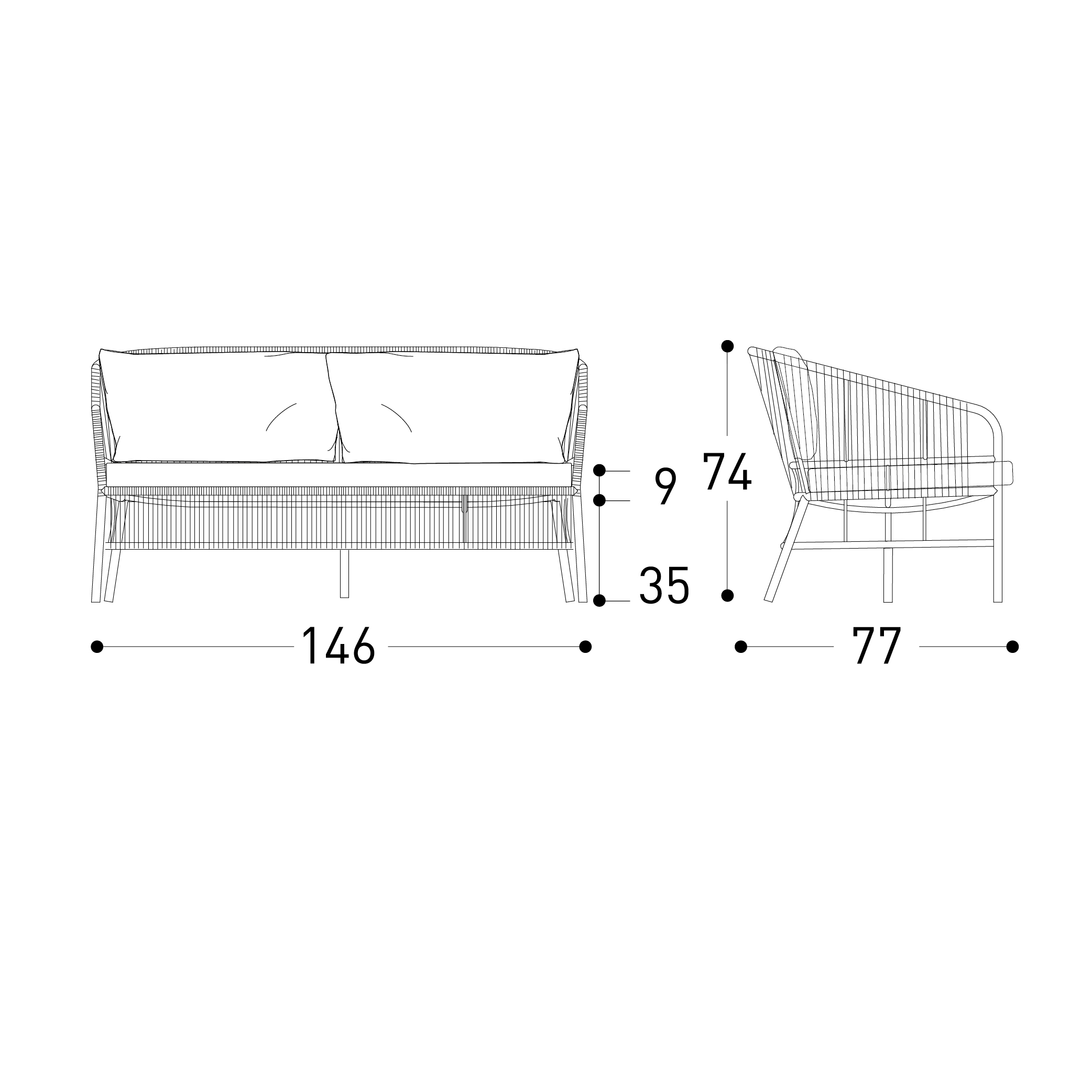 Ένα κομψό χειροποίητο σχοινί πλέκεται στο κέλυφος του διθέσιου καναπέ Cricket, μια πρόταση για εξωτερικούς χώρους εμπνευσμένη από τα χρώματα και τα σχήματα της φύσης. Ευρύχωρος και άνετος, ο διθέσιος καναπές Cricket έχει ελαφριά κατασκευή από αλουμίνιο και μαλακά μαξιλάρια που τον κάνουν ιδιαίτερα φιλόξενο. Ιδανικό για τη διακόσμηση του καθιστικού ενός εξωτερικού χώρου, τόσο οικιακού όσο και επαγγελματικού, χαρακτηρίζεται από την ευελιξία του στυλ και την ευκολία με την οποία συνδυάζεται με τα άλλα έπιπλα της ομώνυμης συλλογής.
