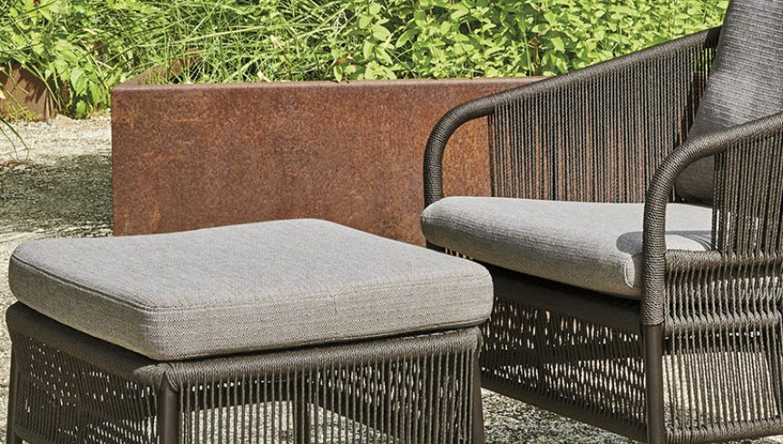 Περιλαμβάνεται μαξιλάρι καθίσματος, με αφρό Dryfeel® για εξωτερικούς χώρους και αφαιρούμενο κάλυμμα σε ποικιλία υφασμάτων εξωτερικού χώρου.
