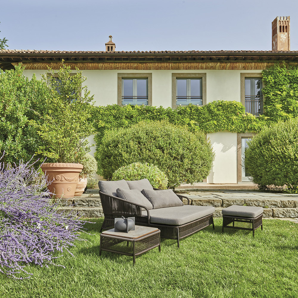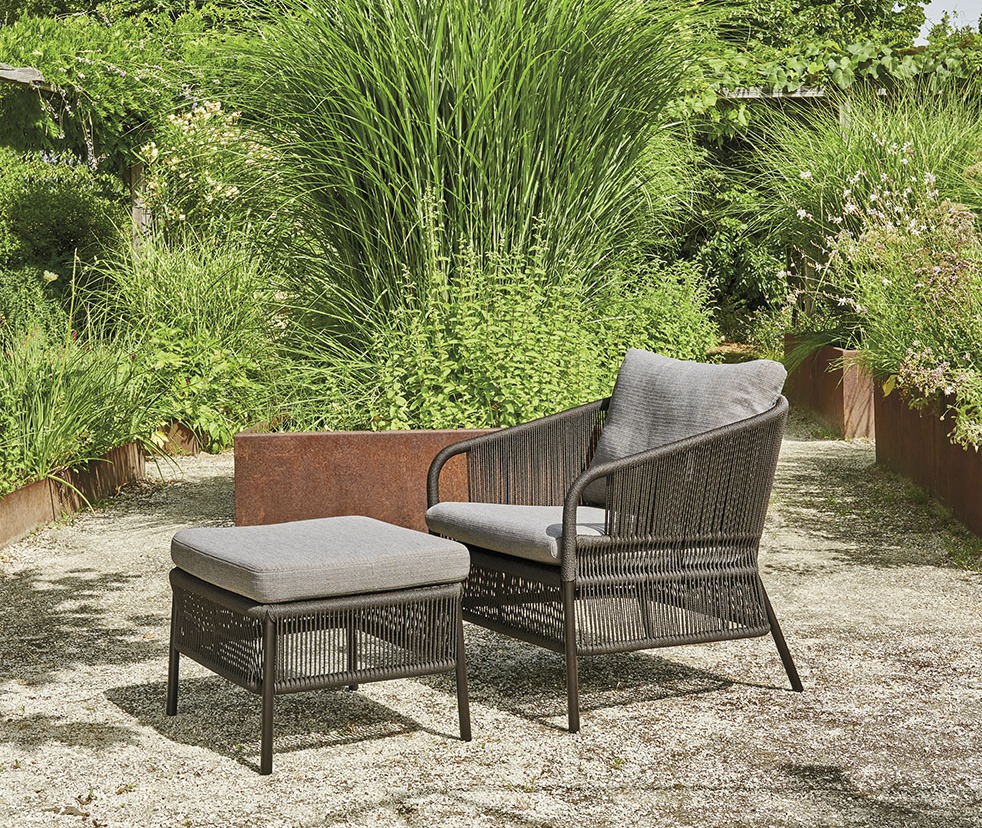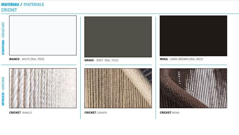 Ένα παραγεμισμένο μαξιλάρι στο οποίο μπορείτε να τεντώσετε τα πόδια σας και να ζήσετε στιγμές χαλάρωσης, σε συνδυασμό με το χειροποίητο πλεγμένο σχοινί στον σκελετό αλουμινίου, στοιχείο που διακρίνει ολόκληρη τη συλλογή. Το πουφ Cricket είναι ιδανικό για να προσθέσει μια νότα άνεσης σε οικιακούς και επαγγελματικούς εξωτερικούς χώρους. Σχήμα, design και μοναδικότητα υπέροχα περικλεισμένα σε ένα υποπόδιο.