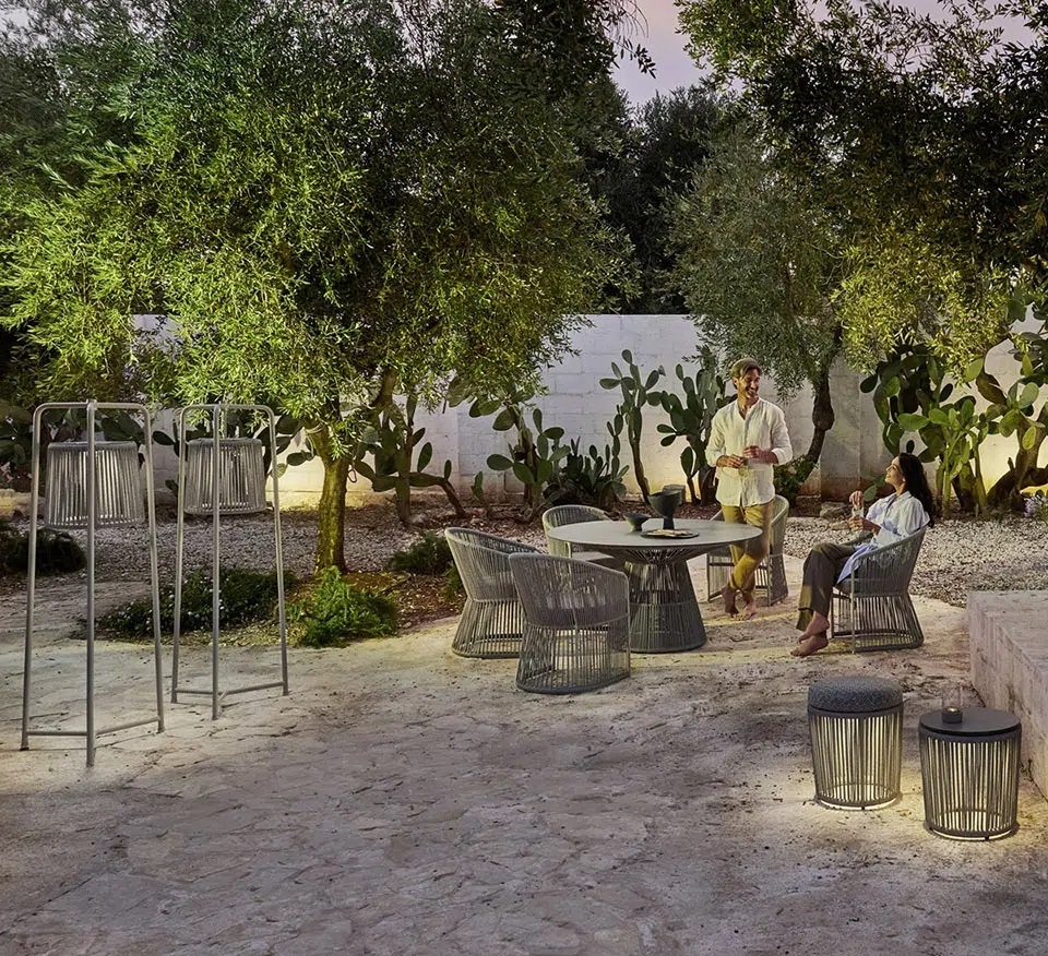 Το αμπαζούρ Tibidabo είναι ένα κομψό και διακριτικό συμπλήρωμα, ικανό να δημιουργήσει τη σωστή ατμόσφαιρα στο υπαίθριο σαλόνι όταν δύει ο ήλιος. Μια κατασκευή από αλουμίνιο, στηρίζει ένα καλάθι με χειροποίητη πλέξη σχοινιού. Ελαφρύ και ευέλικτο, προσθέτει μια πινελιά στυλ στους οικιακούς και επαγγελματικούς χώρους.