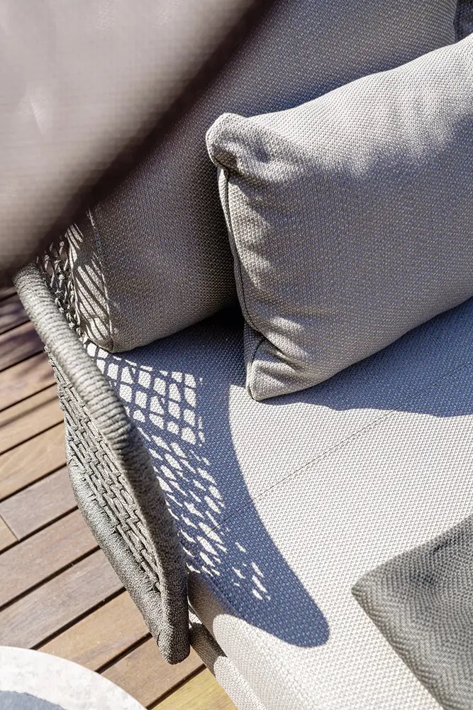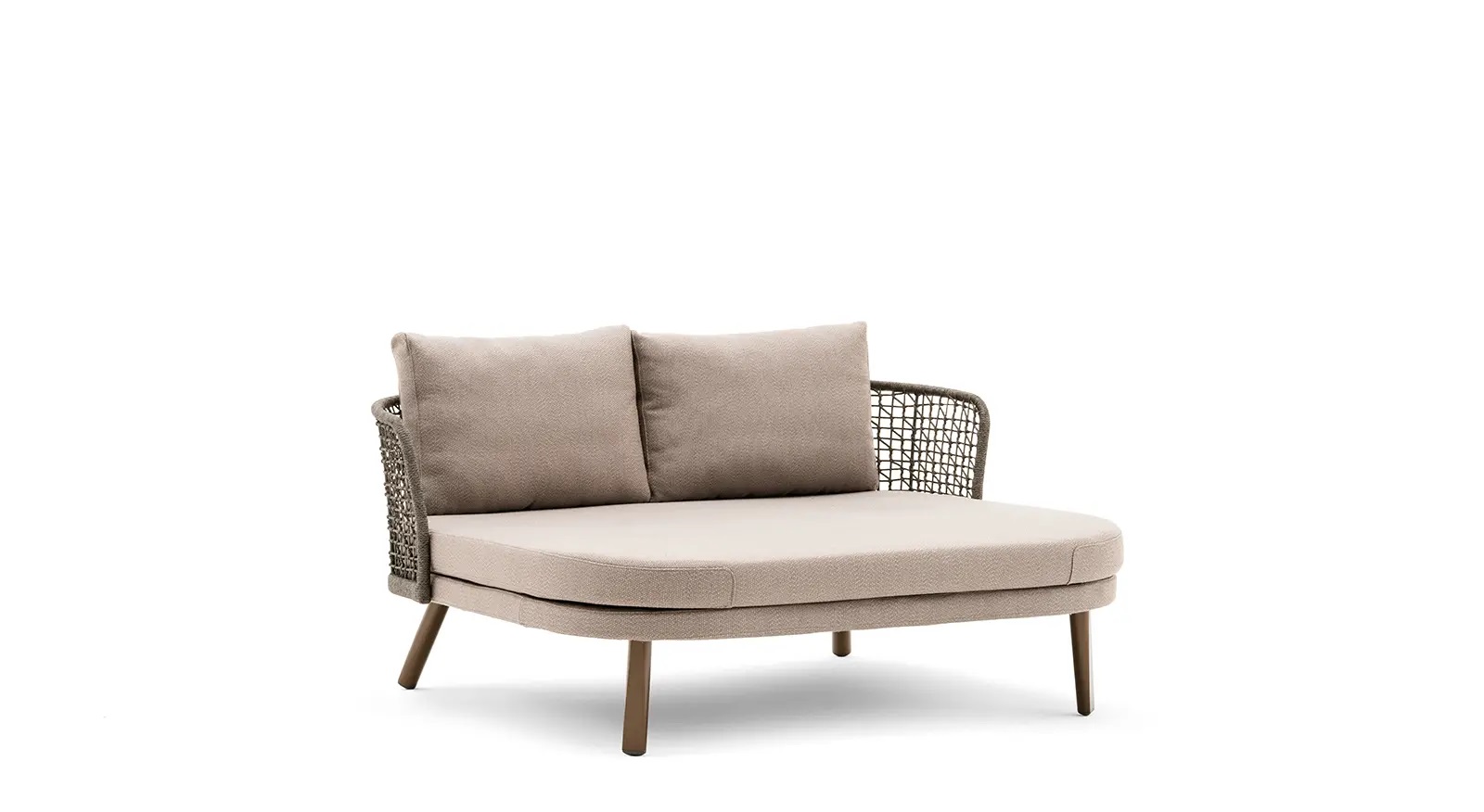 Το Daybed Compact της συλλογής Emma χαρακτηρίζεται από την ιδιαίτερη χειροποίητη πλέξη στη πλάτη, μια εκλεπτυσμένη λεπτομέρεια που δίνει έμφαση στο σχήμα και το σχεδιασμό. Ξεχωρίζει για την κομψότητα και την προσαρμοστικότητα σε κάθε υπαίθριο περιβάλλον: κήπους, μπαλκόνια, βεράντες, αίθρια, πισίνες.