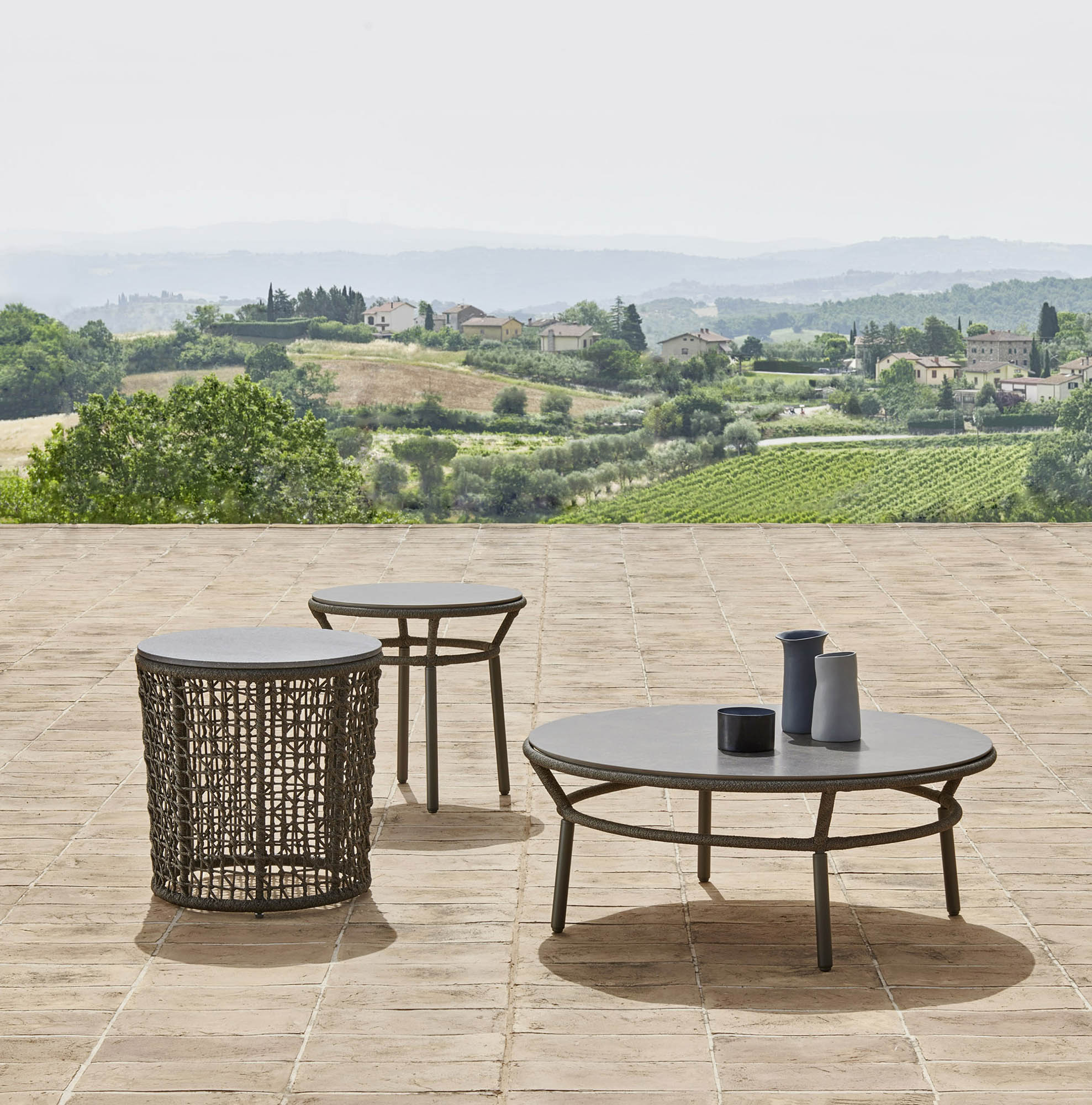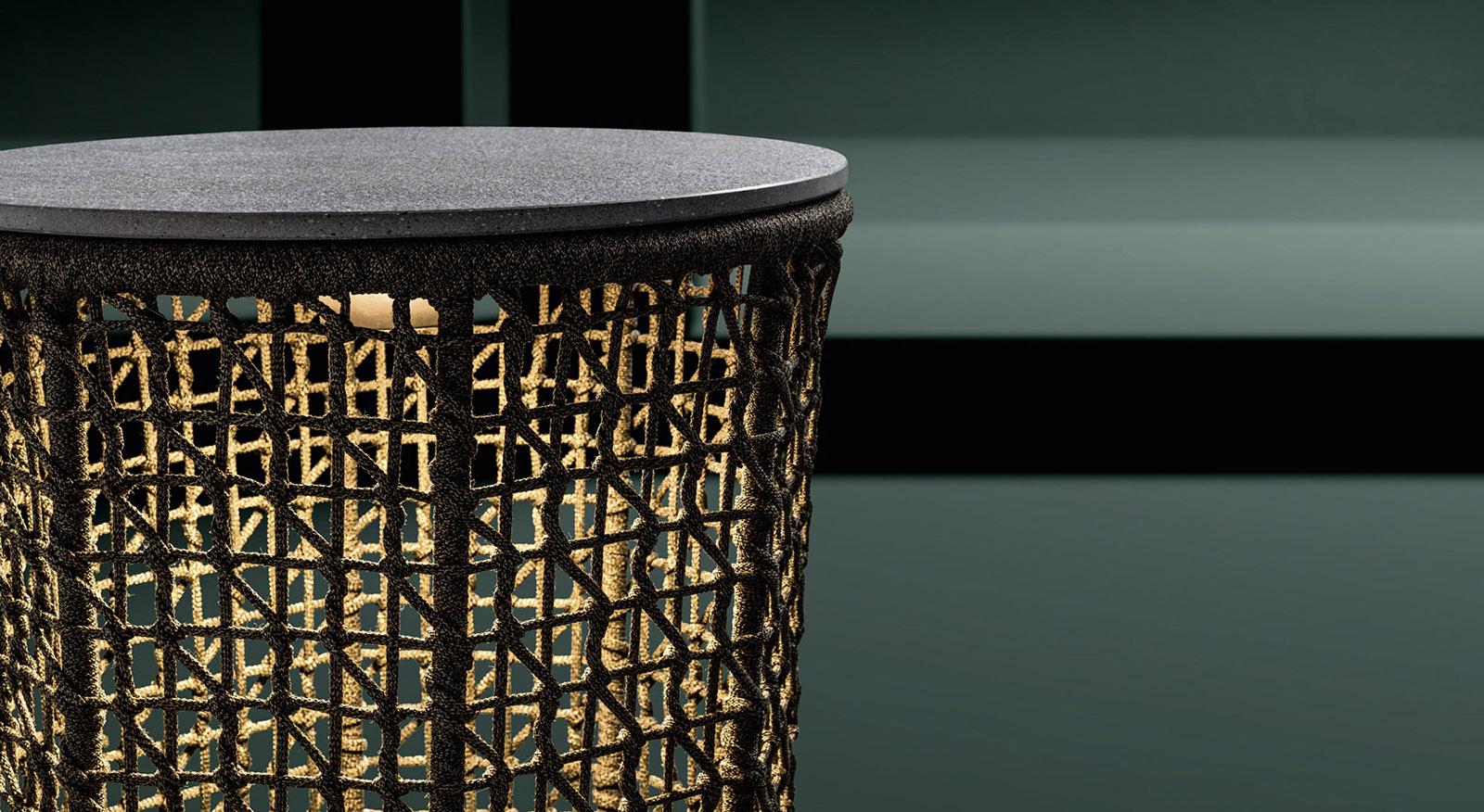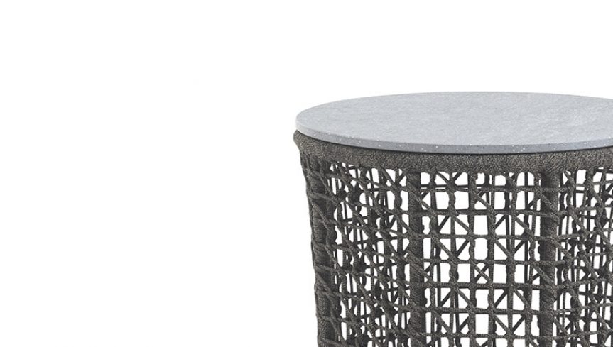 Υλικό: Σκελετός αλουμινίου, χειροποίητη πλέξη συνθετικού σχοινιού, επιφάνεια HPL ή κεραμικό.