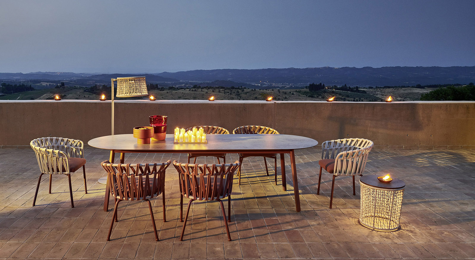 Διατίθεται κατόπιν παραγγελίας με σκελετό από αλουμίνιο σε εννέα διαφορετικά φινιρίσματα και ύφανση συνθετικού σχοινιού σε μπέζ, σκούρο γκρί ή rust.