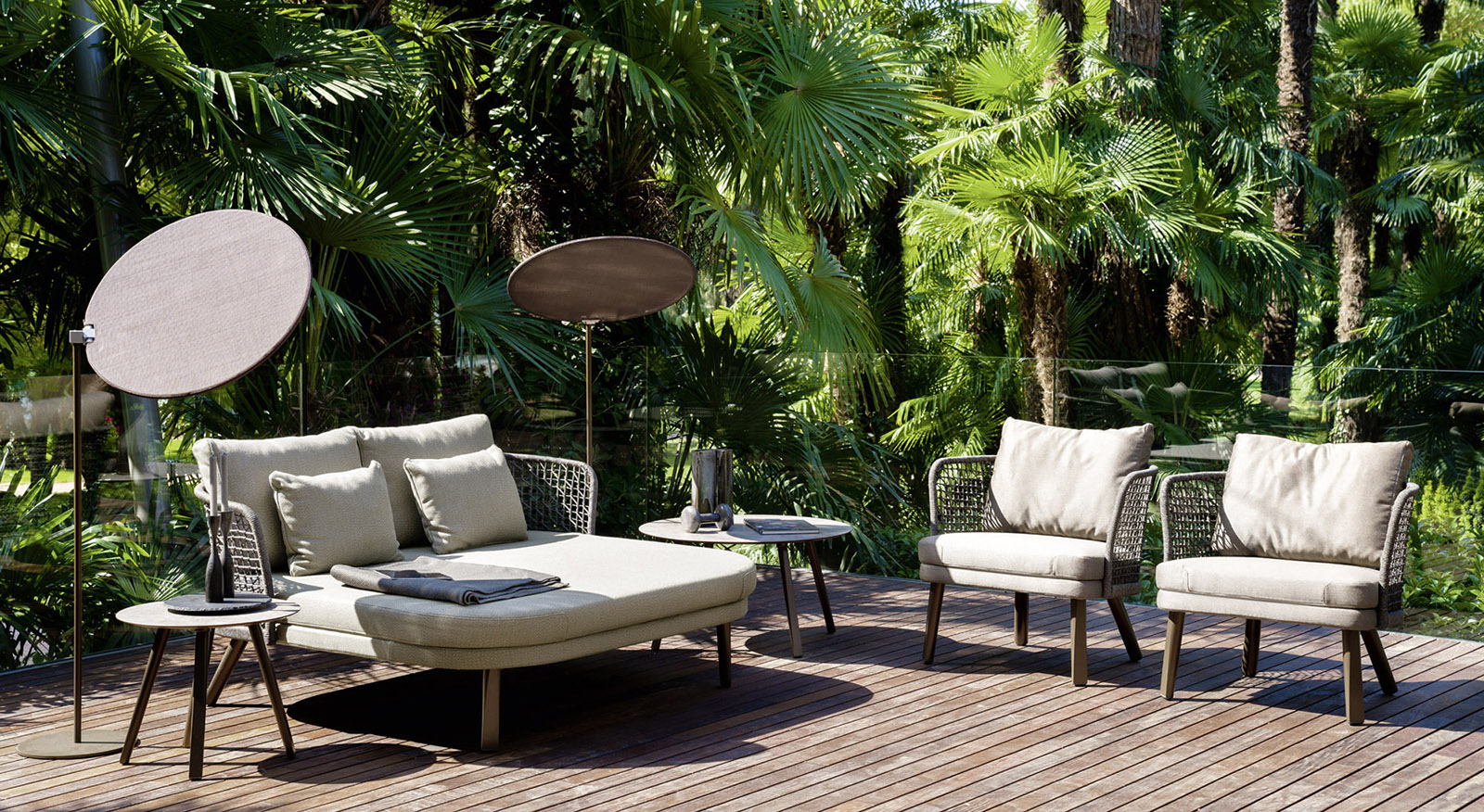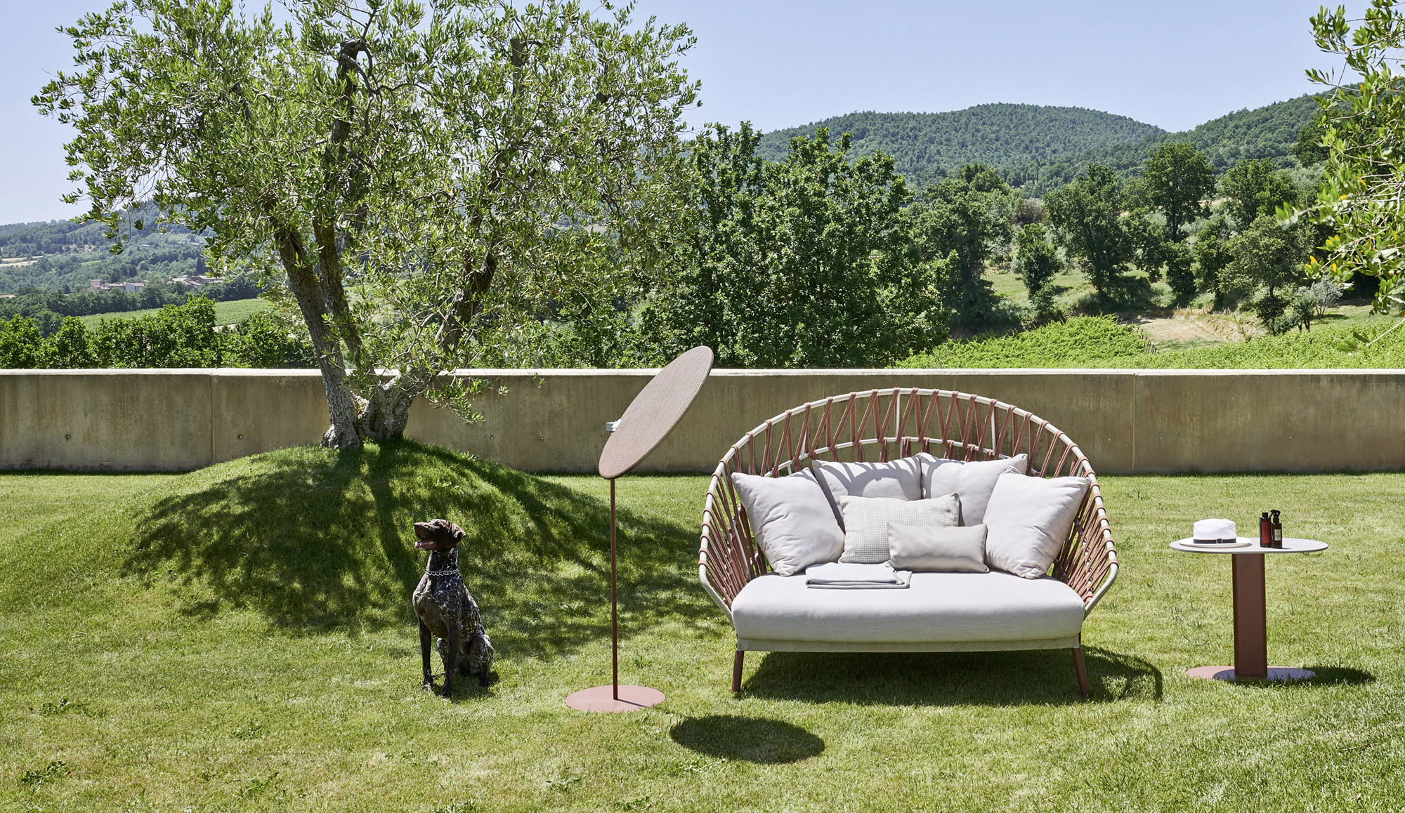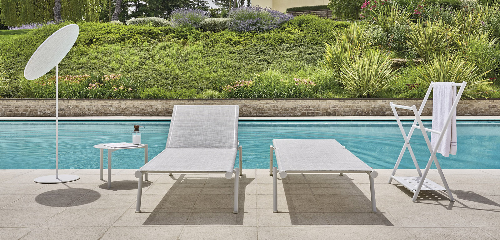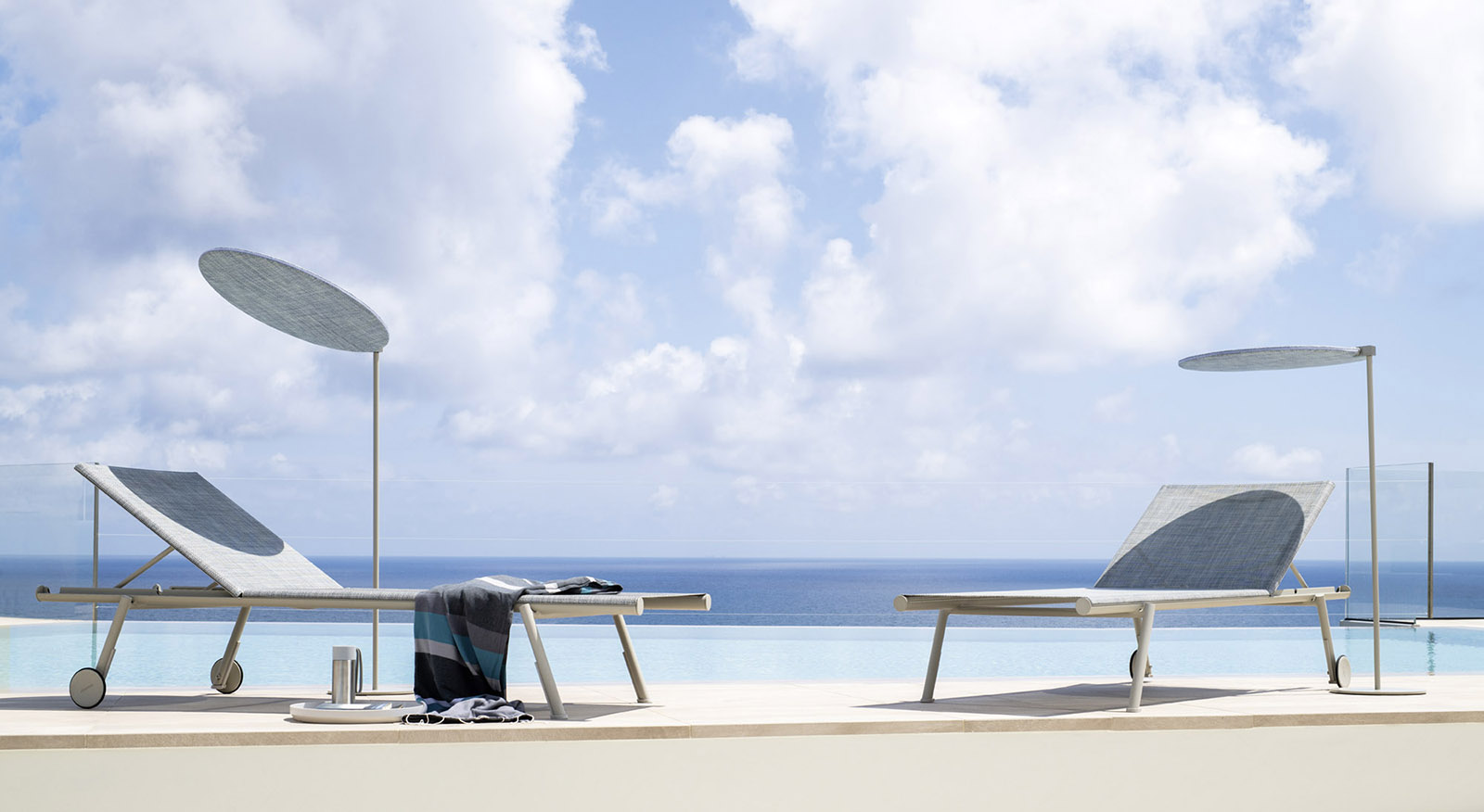 Διατίθεται κατόπιν παραγγελίας με σκελετό από αλουμίνιο σε εννέα διαφορετικά φινιρίσματα και ύφασμα σε οκτώ διαφορετικά χρώματα.
