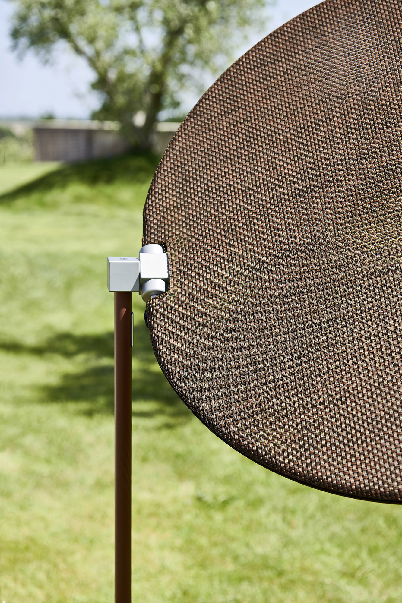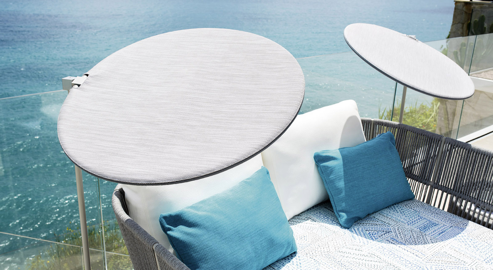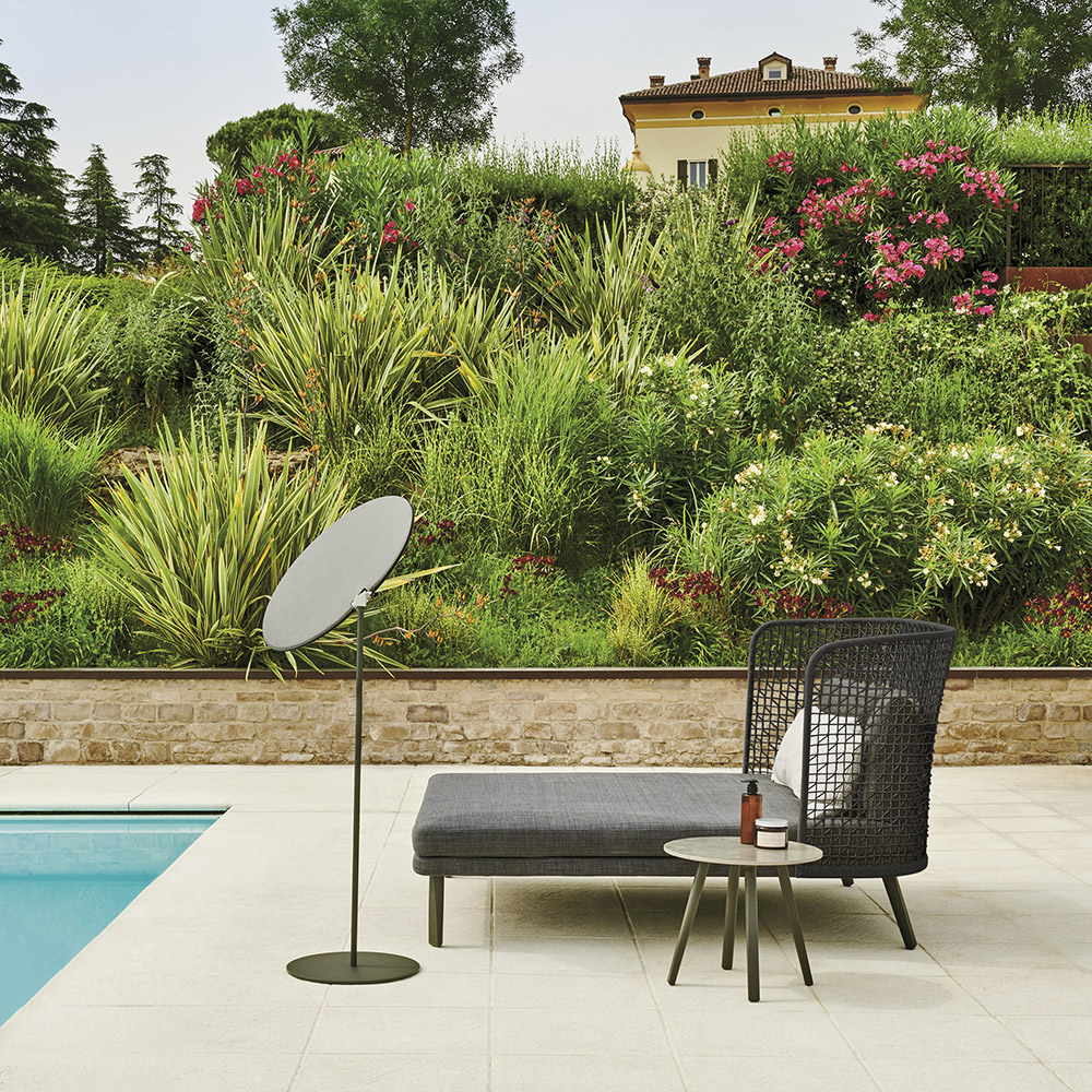 Κομψό, εύχρηστο και πρακτικό, το αντηλιακό πάνελ Emma είναι ένα σκίαστρο με ουσιώδες σχήμα, σχεδιασμένο να μετακινείται εύκολα και να προσανατολίζεται προς οποιαδήποτε κατεύθυνση. Το μικροδιάτρητο τεχνικό ύφασμα PVC που το καλύπτει, φιλτράρει τις ακτίνες του ήλιου, αφήνοντας τον αέρα να περάσει. Ένα συμπλήρωμα που δίνει μια πινελιά στυλ στον εξωτερικό χώρο του καθιστικού, τόσο σε οικιακό όσο και σε επαγγελματικό περιβάλλον.