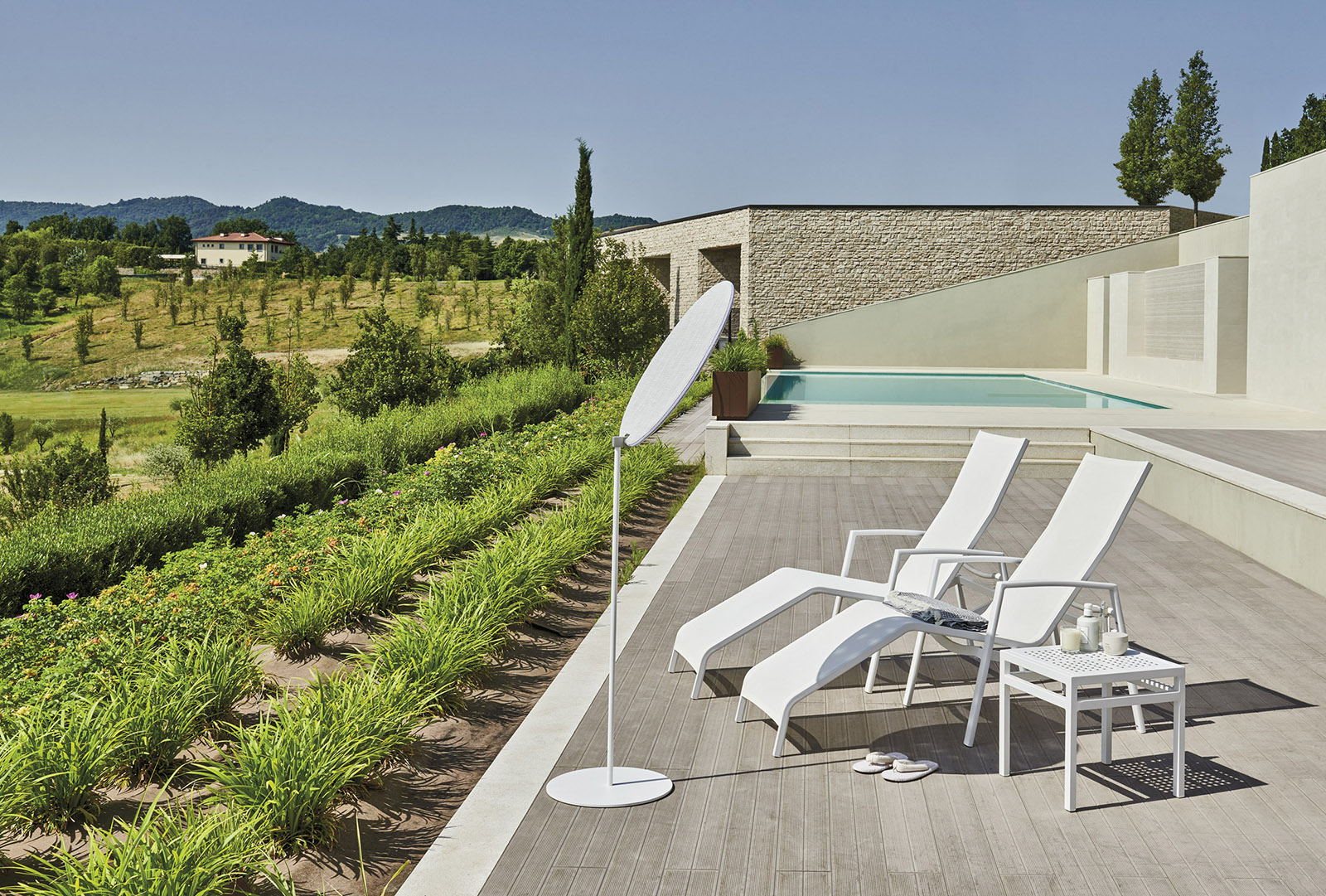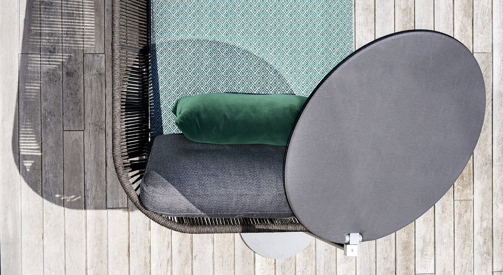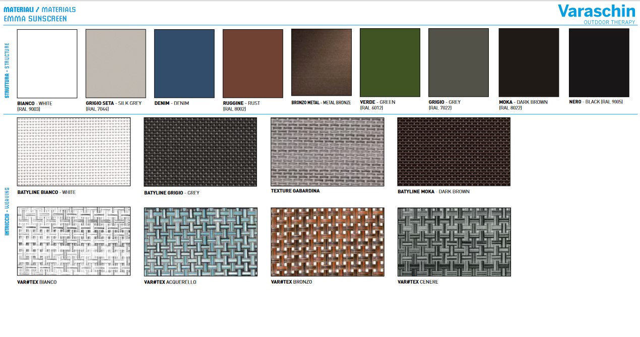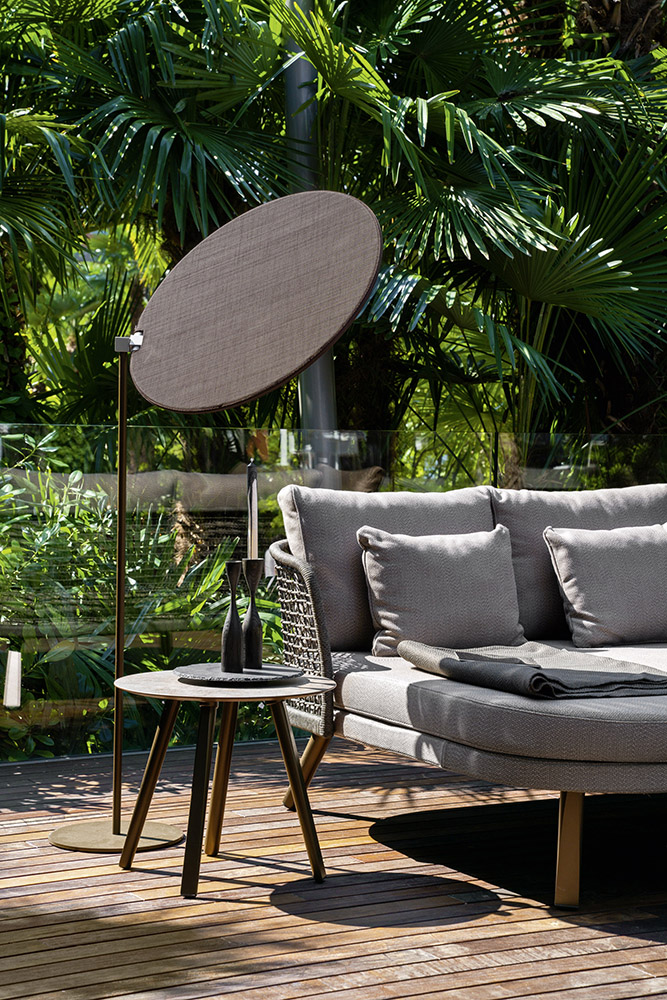 Κομψό, εύχρηστο και πρακτικό, το αντηλιακό πάνελ Emma είναι ένα σκίαστρο με ουσιώδες σχήμα, σχεδιασμένο να μετακινείται εύκολα και να προσανατολίζεται προς οποιαδήποτε κατεύθυνση. Το μικροδιάτρητο τεχνικό ύφασμα PVC που το καλύπτει, φιλτράρει τις ακτίνες του ήλιου, αφήνοντας τον αέρα να περάσει. Ένα συμπλήρωμα που δίνει μια πινελιά στυλ στον εξωτερικό χώρο του καθιστικού, τόσο σε οικιακό όσο και σε επαγγελματικό περιβάλλον.