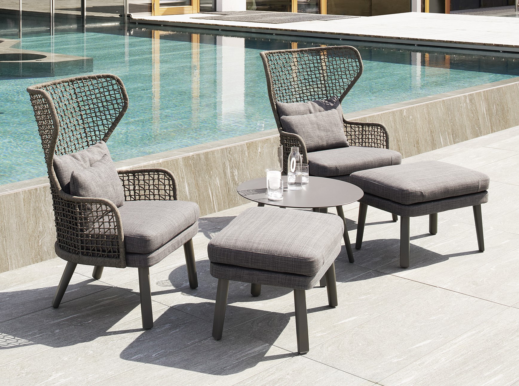 Το υποπόδιο της συλλογής Emma συνοδεύει τα καθίσματα της ομώνυμης συλλογής, ιδιαίτερα την μπερζέρα, προσθέτοντας μια επιπλέον νότα άνεσης για να περάσετε τις μέρες σας στο ύπαιθρο με απόλυτη χαλάρωση. Με τον κομψό σχεδιασμό του βρίσκει τη θέση του σε κήπους, βεράντες, μπαλκόνια, ταράτσες, αίθρια, πισίνες, σε οικιστικά και επαγγελματικά περιβάλλοντα.