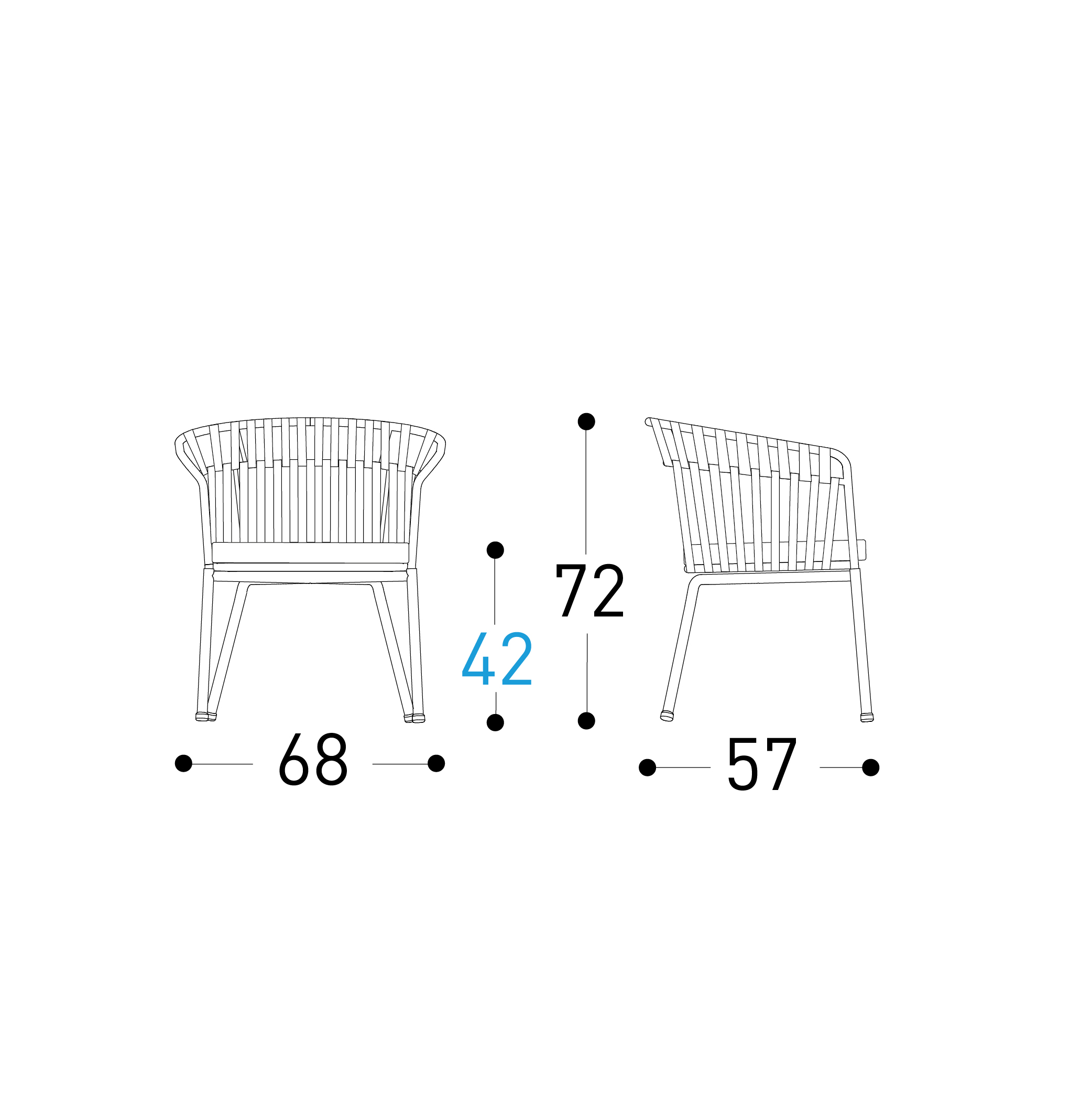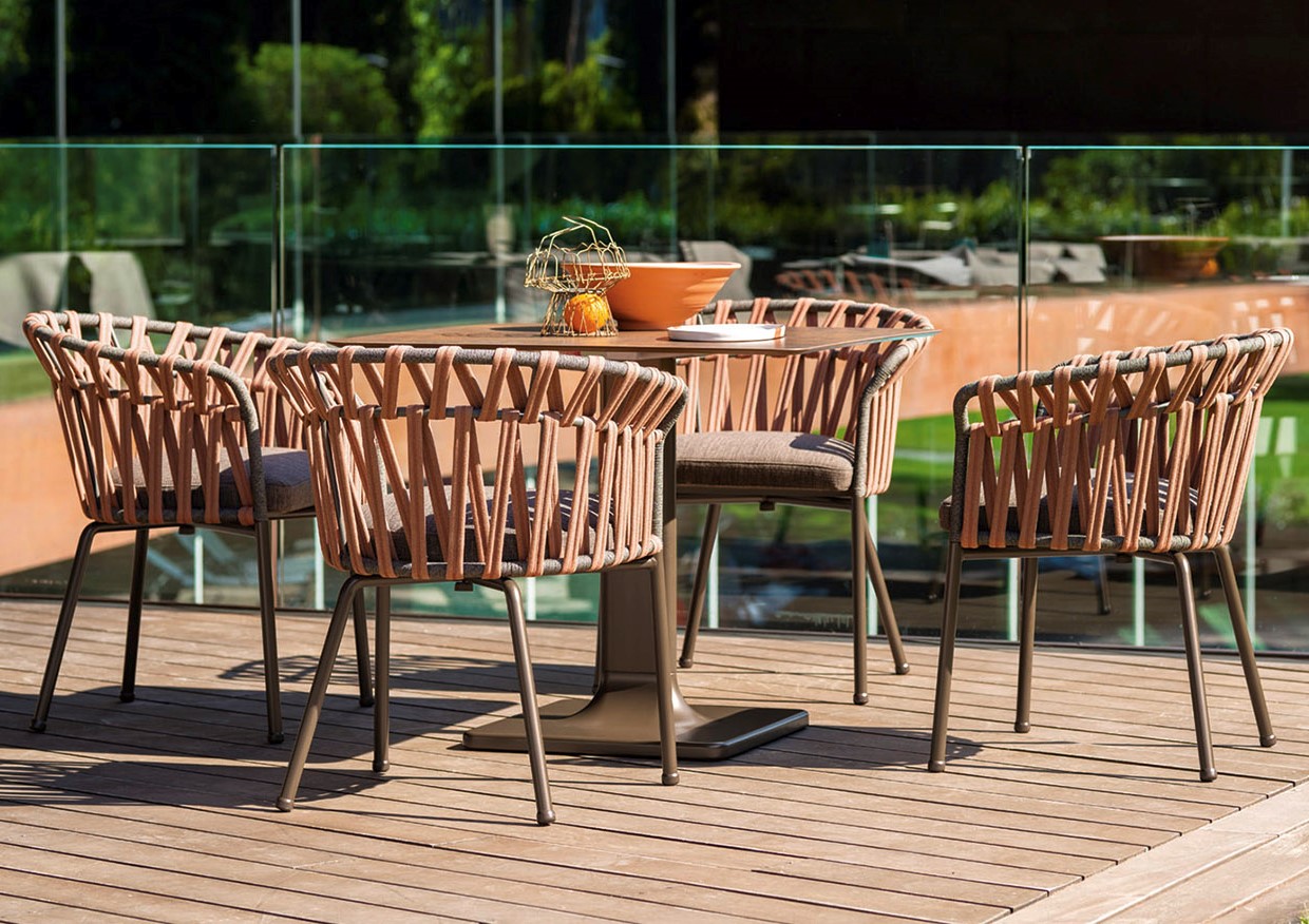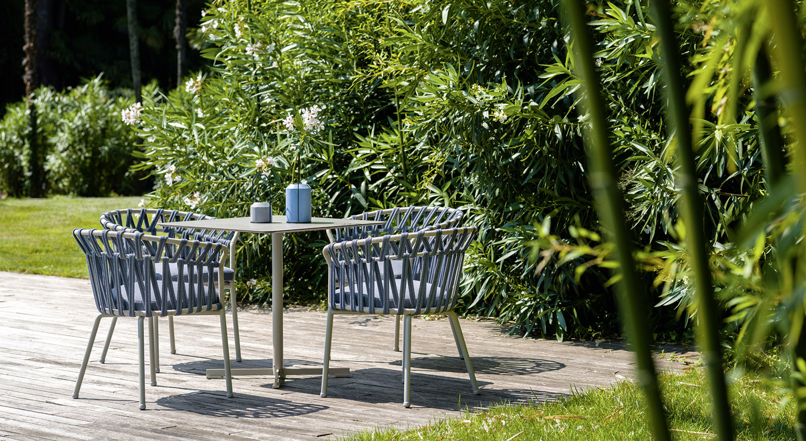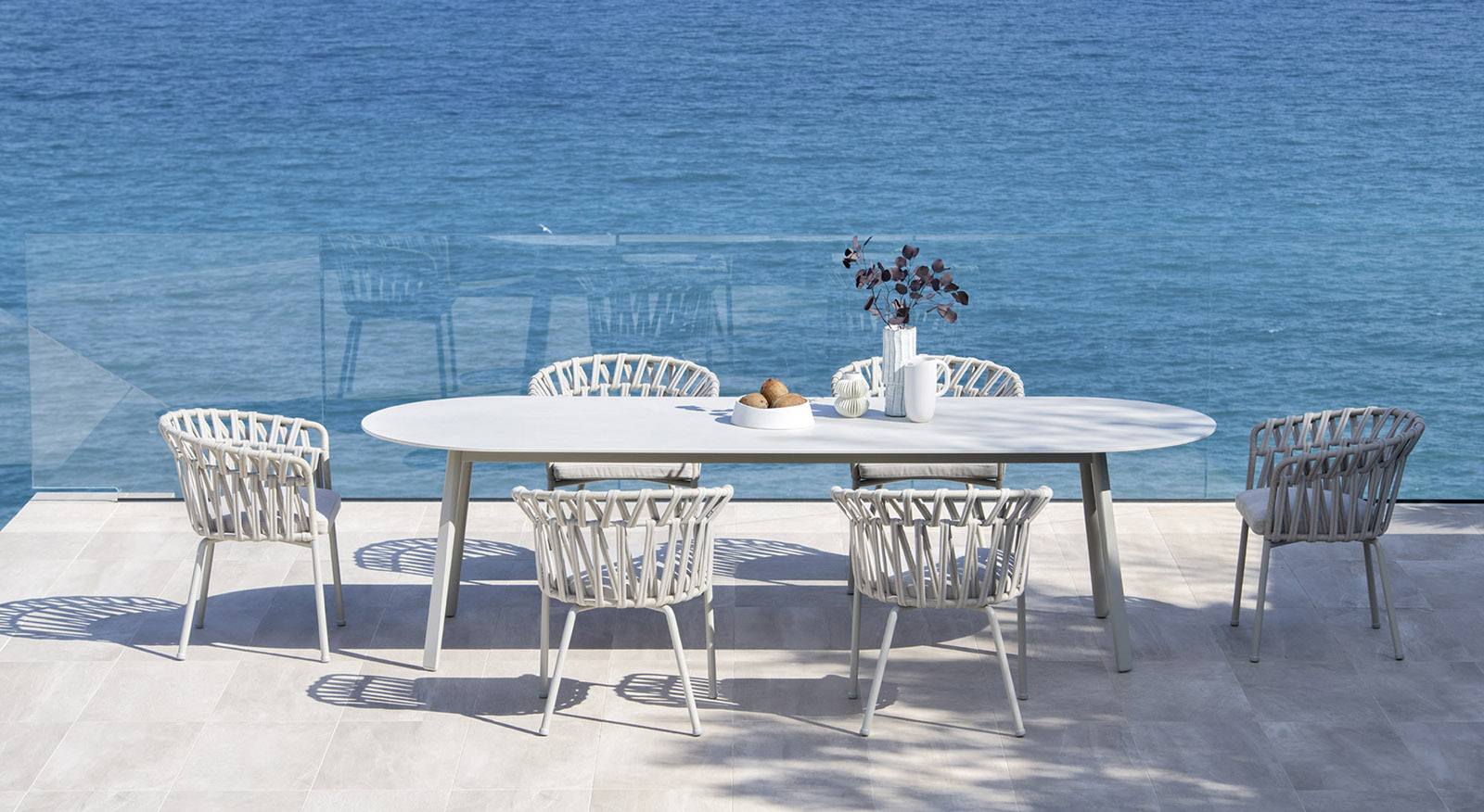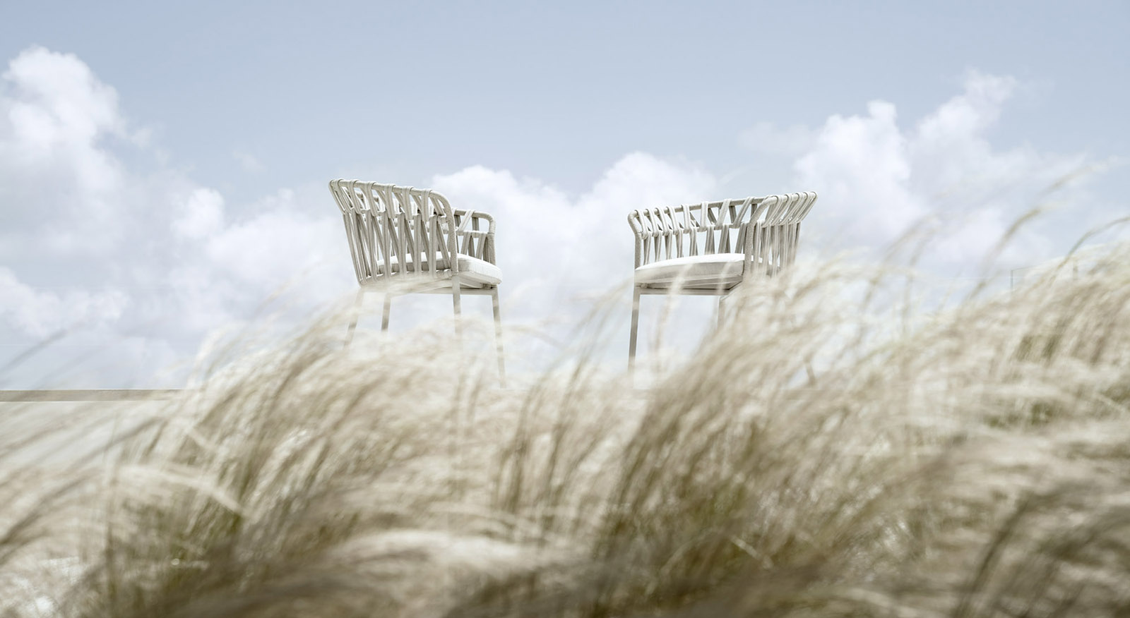 Εμπνευσμένη από τα πέταλα ενός λουλουδιού, η συλλογή Emma Cross έχει ένα design που περικλείει, καλωσορίζει και χαλαρώνει. Η λωρίδα από ακρυλικό ύφασμα, αγκαλιάζει την πλέξη του σχοινιού που καλύπτει το πλαίσιο αλουμινίου, σχεδιάζοντας την επιφάνεια της πλάτης με διαγώνιες γραμμές. Μια διπλή ύφανση που γίνεται το εμβληματικό μοτίβο αυτής της κομψής συλλογής για εξωτερικούς χώρους. Οι χρωματικές επιλογές της Emma Cross, δίνουν ζωή σε μια φρέσκια και κομψή πρόταση, ιδανική τόσο για οικιακούς όσο και για επαγγελματικούς χώρους.