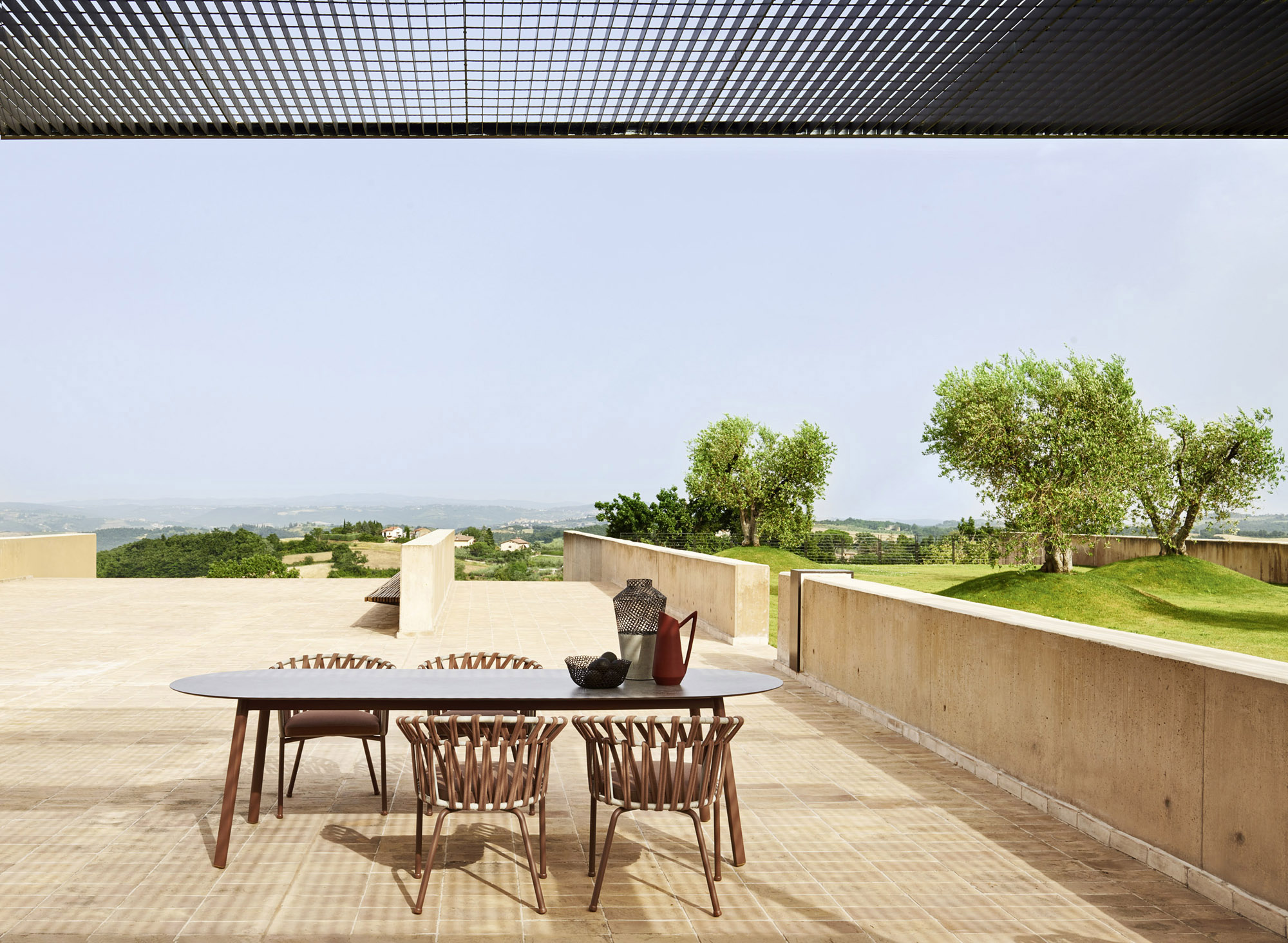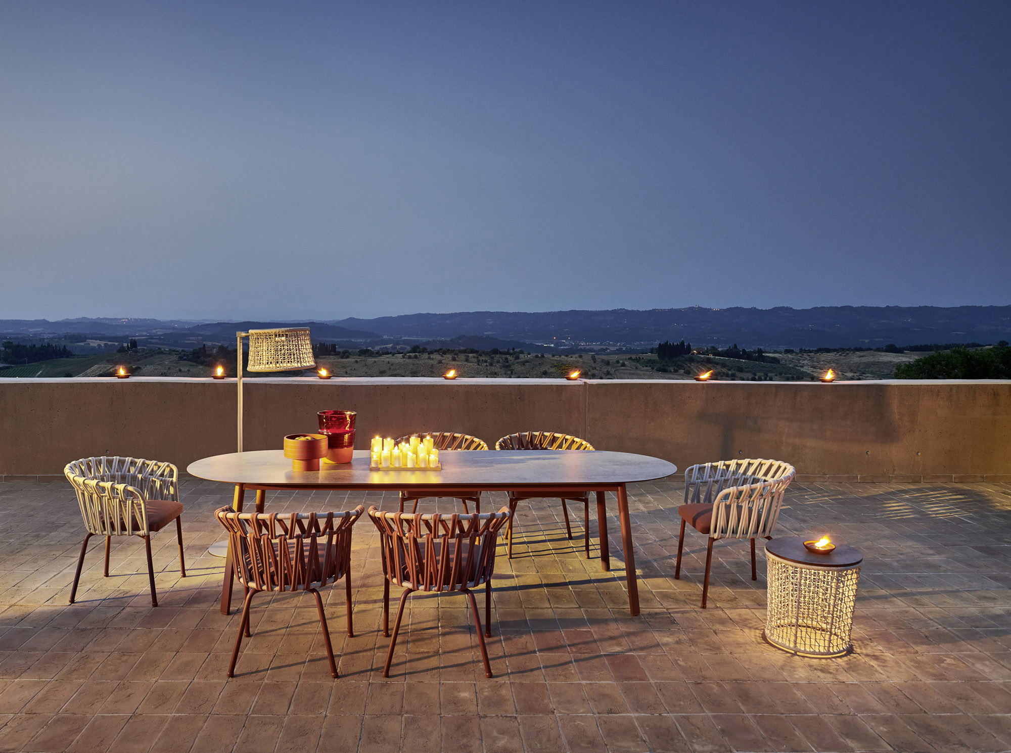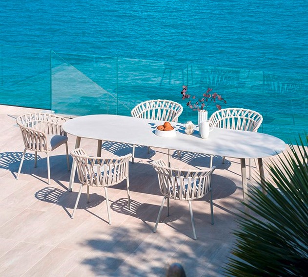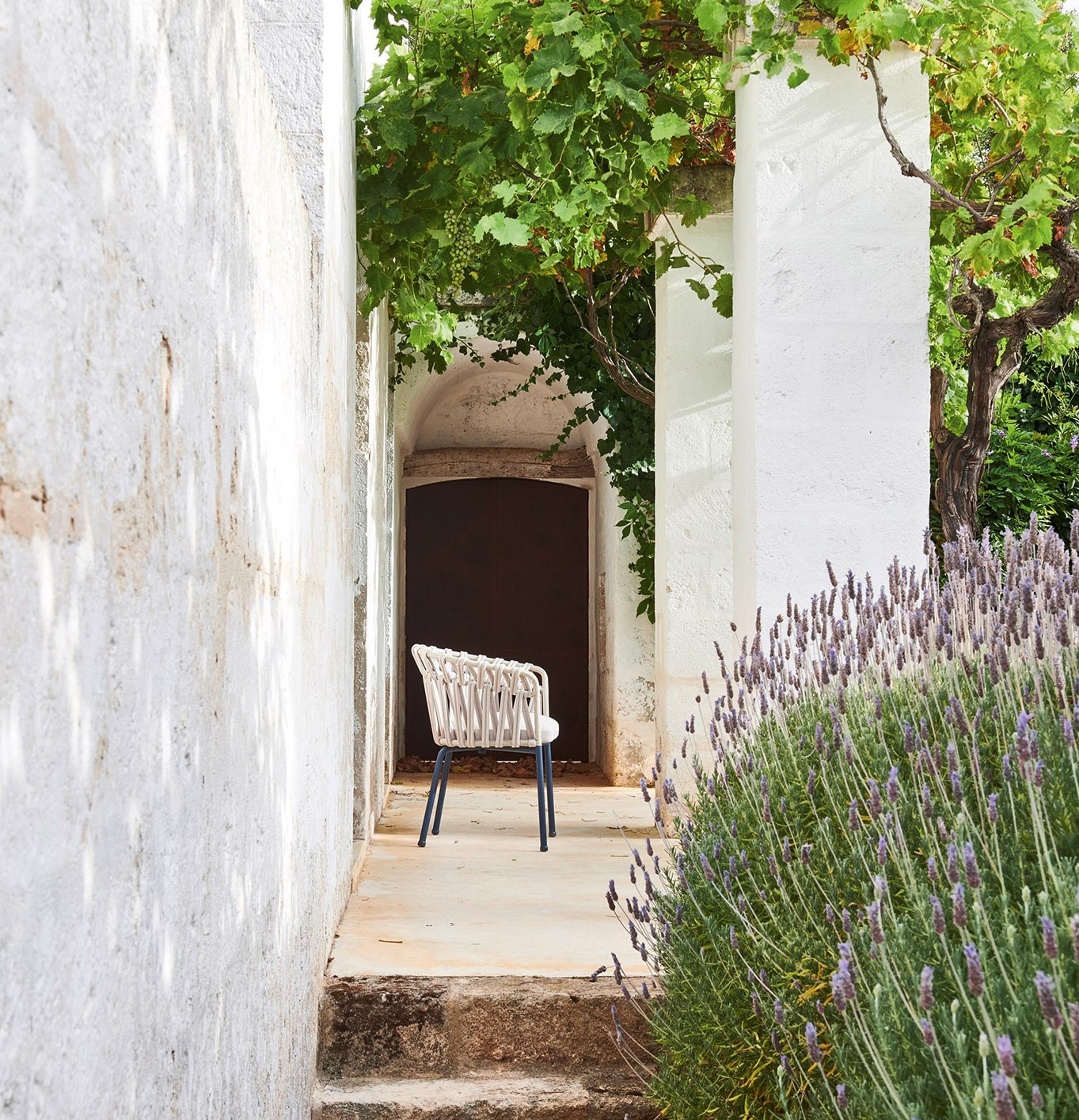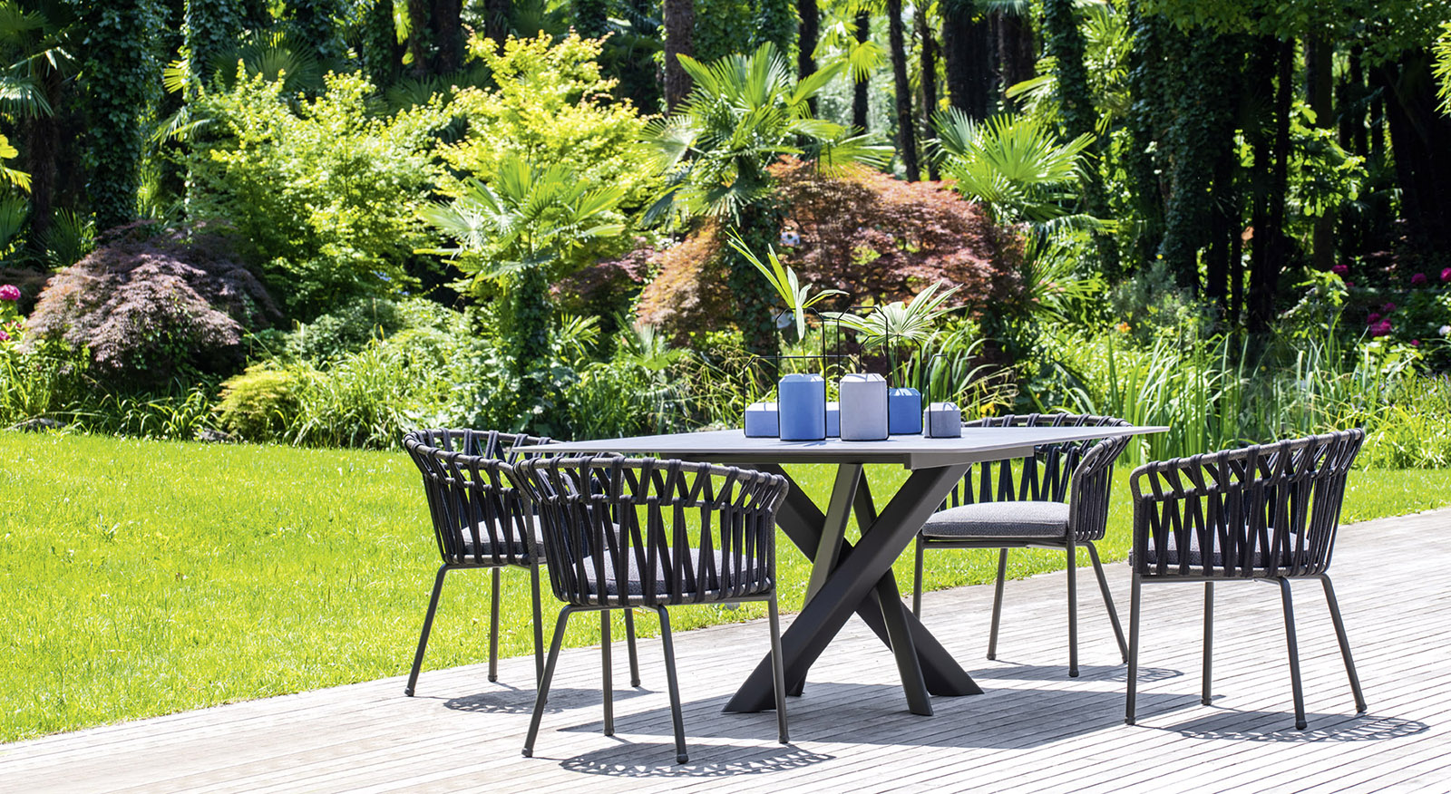 Εμπνευσμένη από τα πέταλα ενός λουλουδιού, η συλλογή Emma Cross έχει ένα design που περικλείει, καλωσορίζει και χαλαρώνει. Η λωρίδα από ακρυλικό ύφασμα, αγκαλιάζει την πλέξη του σχοινιού που καλύπτει το πλαίσιο αλουμινίου, σχεδιάζοντας την επιφάνεια της πλάτης με διαγώνιες γραμμές. Μια διπλή ύφανση που γίνεται το εμβληματικό μοτίβο αυτής της κομψής συλλογής για εξωτερικούς χώρους. Οι χρωματικές επιλογές της Emma Cross, δίνουν ζωή σε μια φρέσκια και κομψή πρόταση, ιδανική τόσο για οικιακούς όσο και για επαγγελματικούς χώρους.