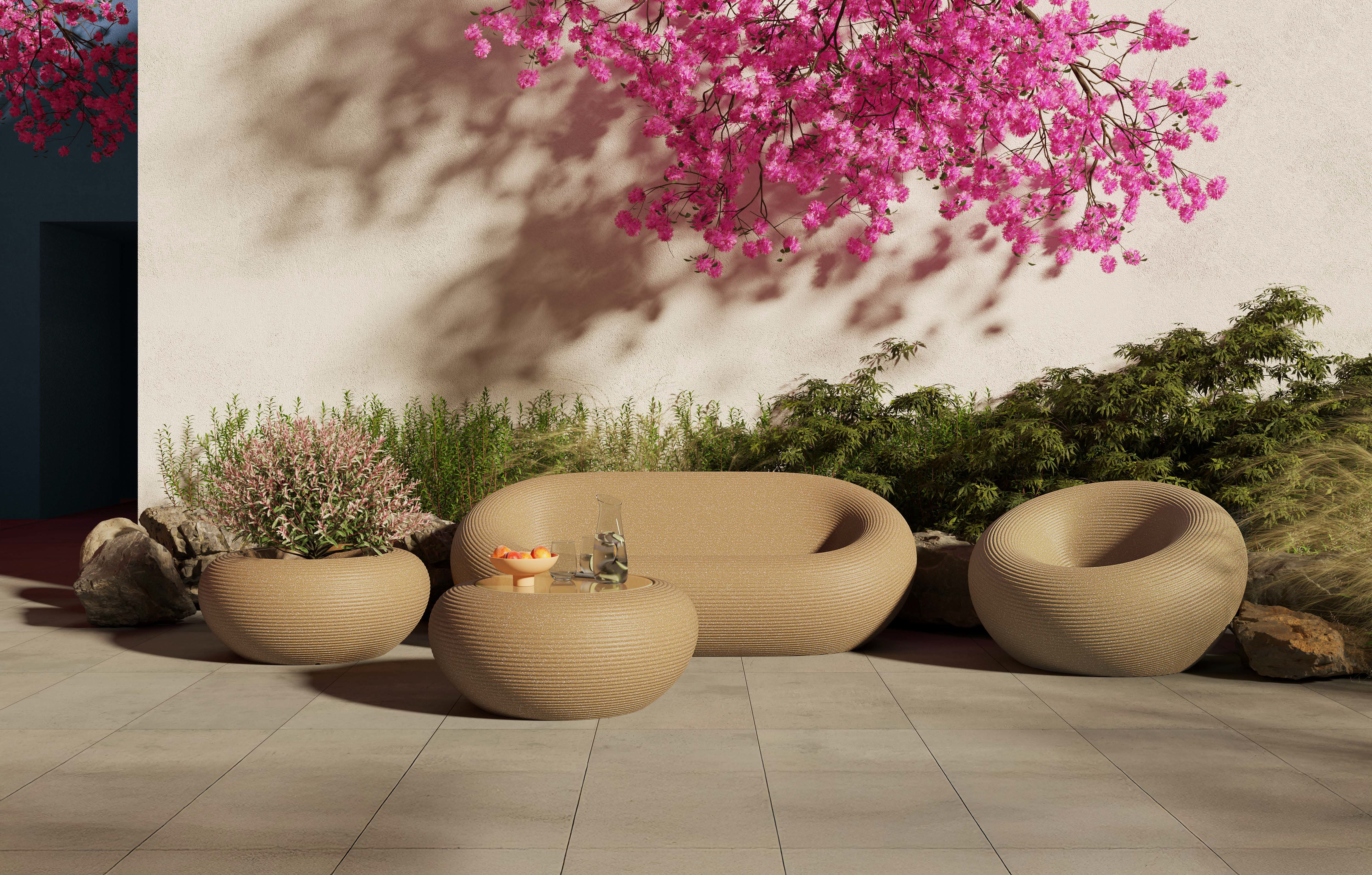 Η πολυθρόνα Nami έχει ένα τέλειο κυκλικό σχήμα όπου τα καλούπια που χαρακτηρίζουν την επιφάνειά της ξετυλίγονται από το κέντρο προς τις άκρες της με μια ακολουθία ομόκεντρων δακτυλίων. Στο κέντρο της πολυθρόνας υπάρχει ένα κανάλι για την παλινδρόμηση του νερού.