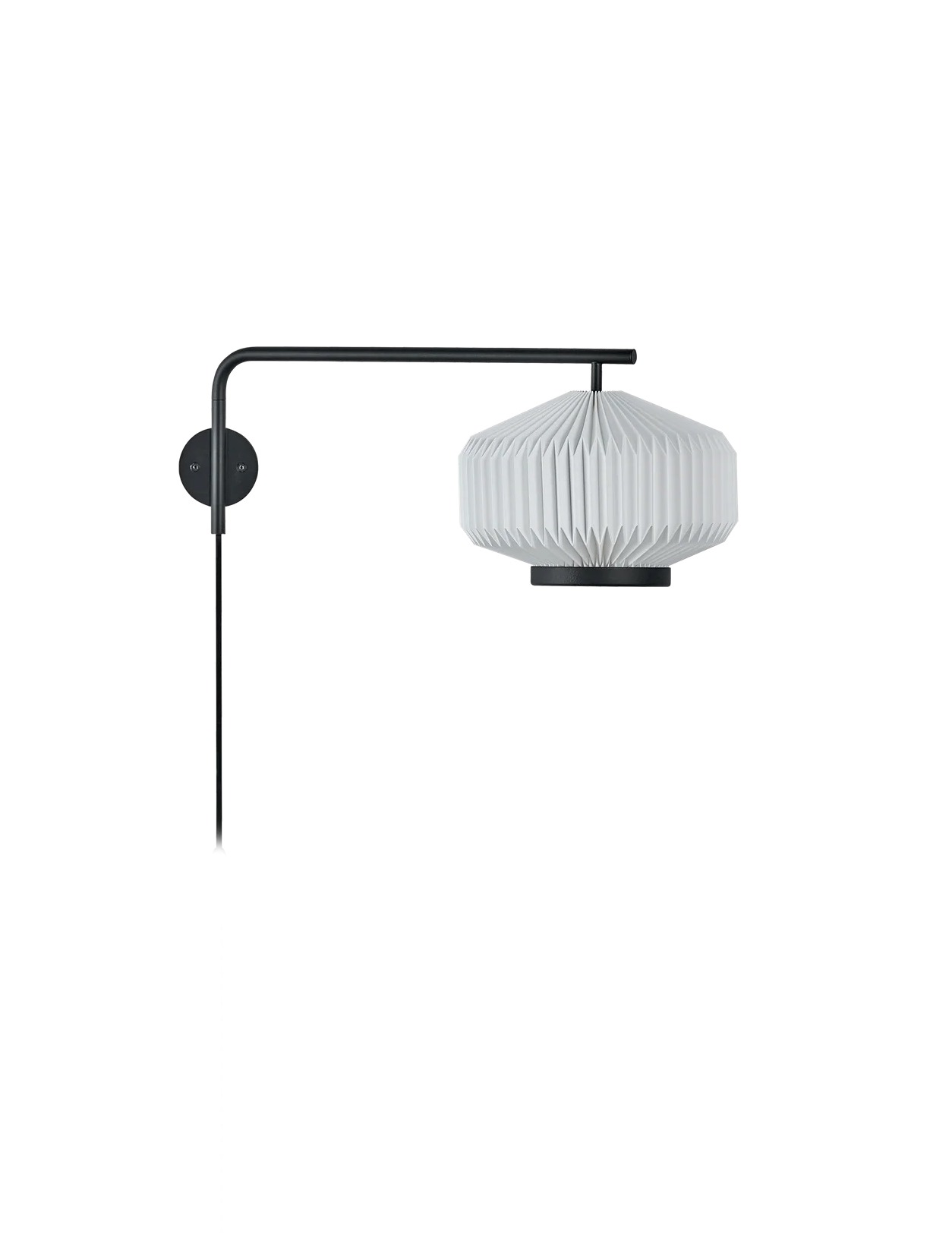 Το επιτοίχιο Shibui διαθέτει ένα αμπαζούρ διπλωμένο στο χέρι, ένα μαύρο μεταλλικό δαχτυλίδι και μαύρη μεταλλική λακαριστή βάση.