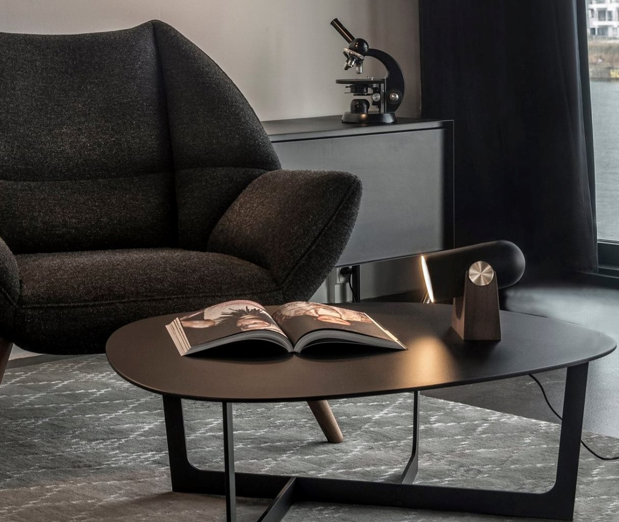 Η συλλογή αποτελείται από ένα φωτιστικό δαπέδου, επιτραπέζιο, κρεμαστό και ένα πολυλειτουργικό επιτραπέζιο/επιτοίχο φωτιστικό, σε μαύρο χρώμα.