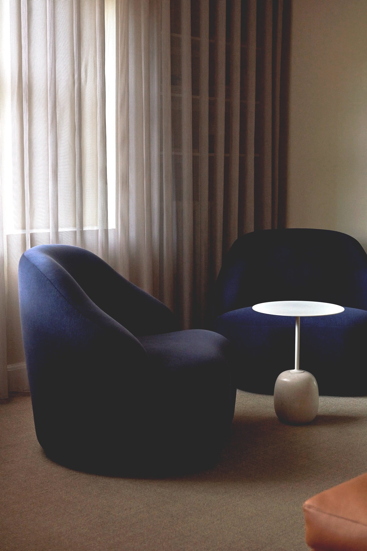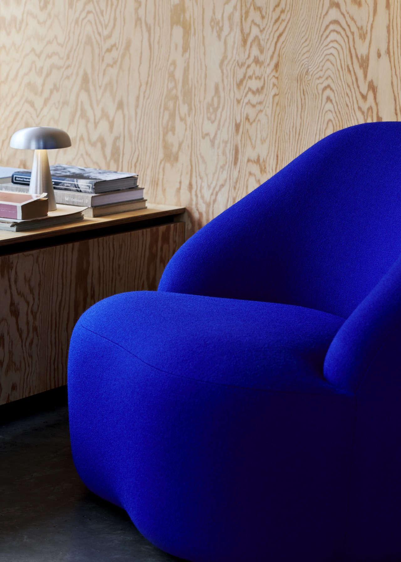 Η συλλογή αποτελείται από δύο πολυθρόνες με διαφορετική βάση, έναν καναπέ σε δύο διαστάσεις και ένα πούφ.