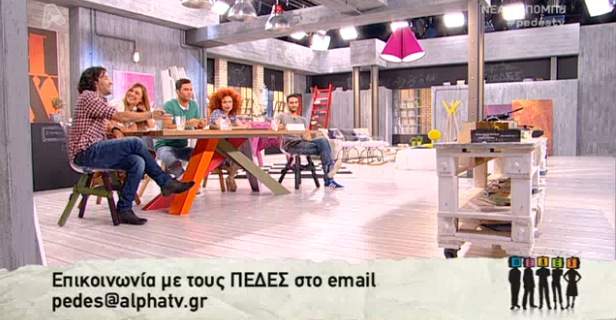 To σκηνικό της εκπομπής ΠΑΙΔΕΣ είναι ξεχωριστό για εμάς μιάς και μας δώθηκε η ευκαιρια να εκφράσουμε έναν νεανικό χαρακτήρα με πολυχρωμίες και σχέδια που να ταιριάζουν στην δυναμική της ομάδας παρουσιαστών. Ένα σκηνικό εκπομπής έχει τελείως διαφορετικές εργονομικές ανάγκες, καθιστόντας το πρόκληση αλλα και ευκαιρία εργασίας σε ένα project διαφορετικό απο τα συνηθισμένα.