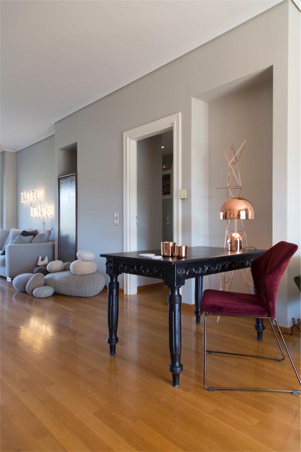 Ένα σπίτι με ιδιόμορφο καταμερισμό χώρων όπου κάθε αντικείμενο επιλέχθηκε προσεχτικά ώστε το συνολικό αποτέλεσμα ενω έχει σαφείς vintage επιρροές, αποπνέει χαλάρωση και οικειότητα.