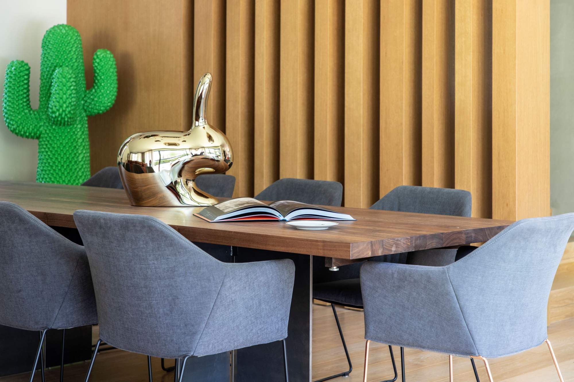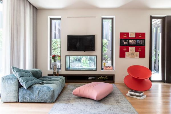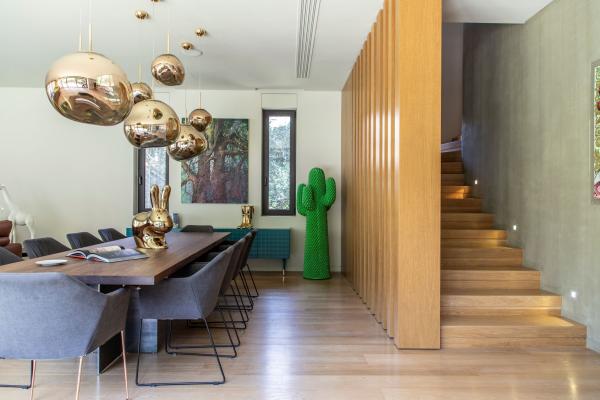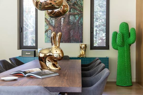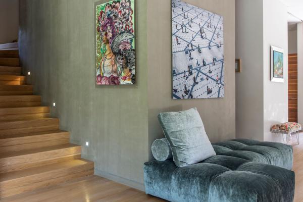 Ένα σπίτι που χαρακτηρίζεται από το πάθος των ιδιοκτητών για την τέχνη, με επιλογές σε σίκ έπιπλα τα οποία συνυπάρχουν όμως με pop-art και eclectic διακοσμητικά.