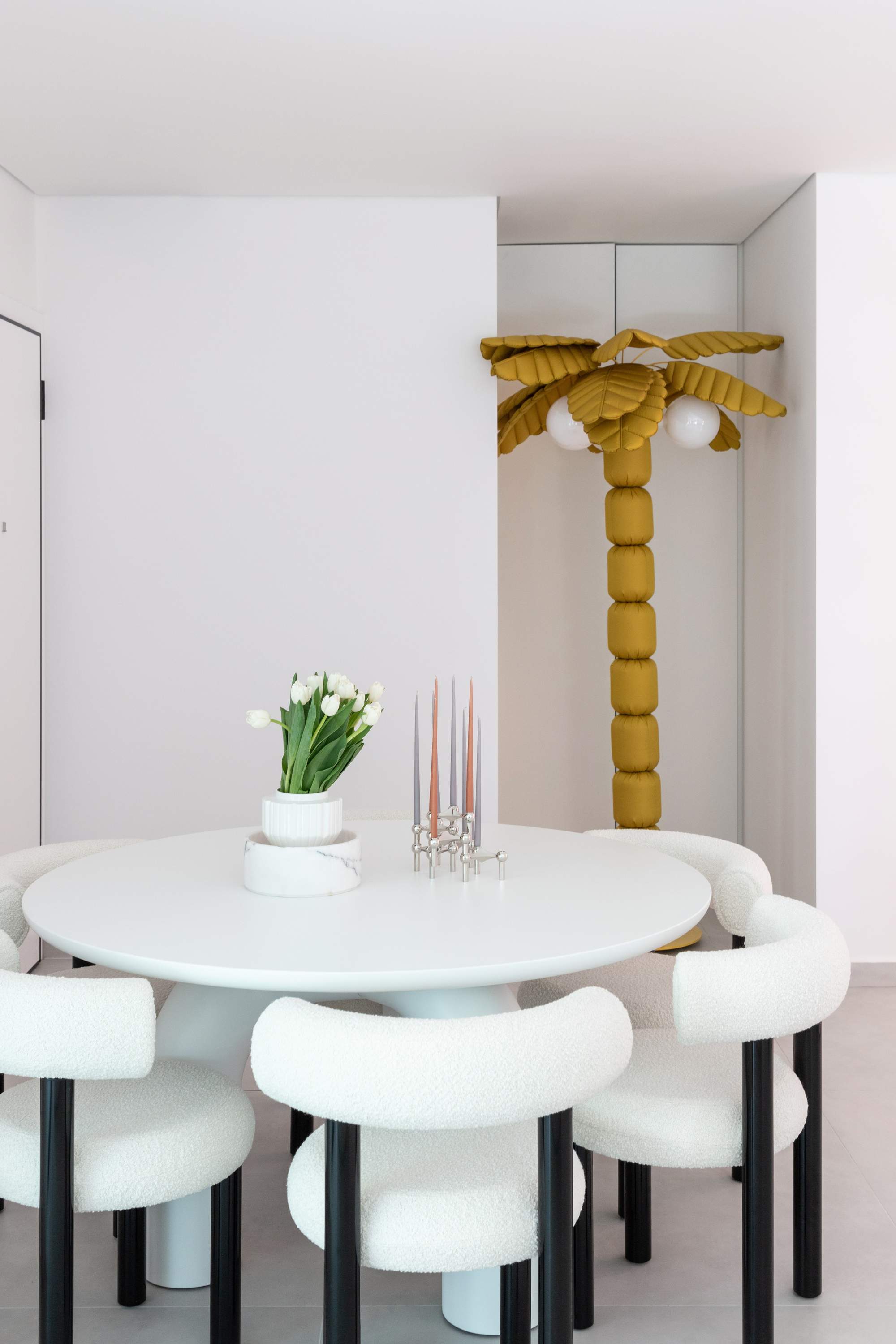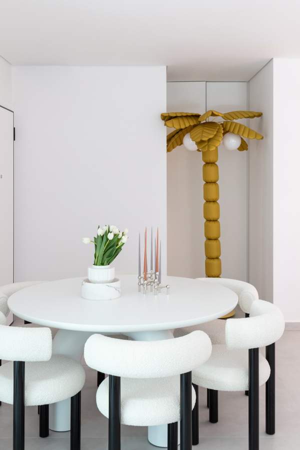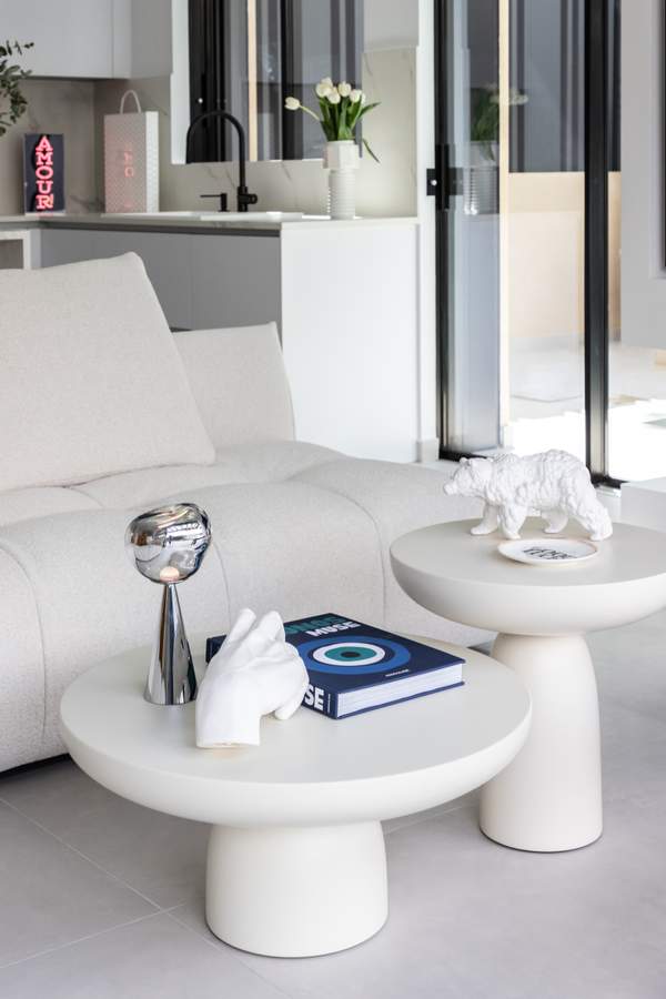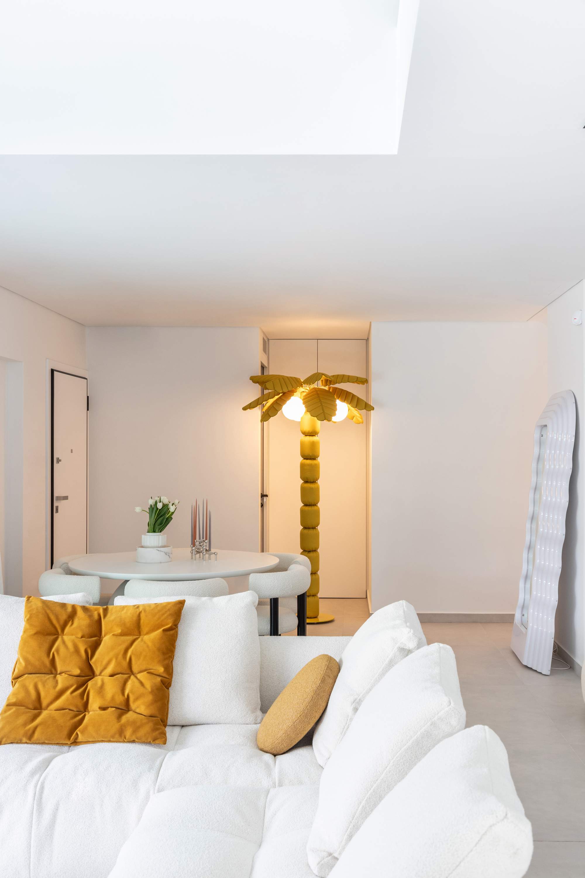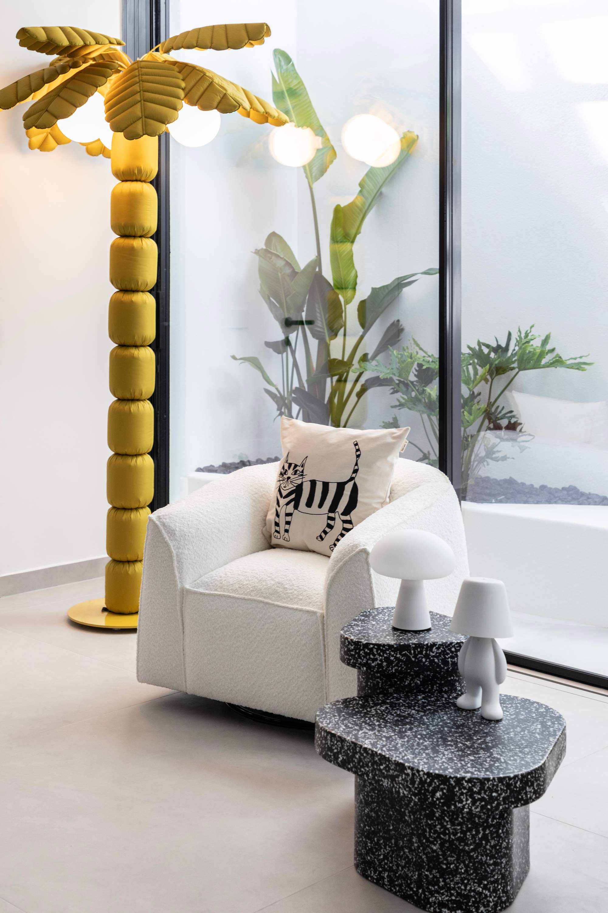 Η επιλογή έγινε με βάση το λευκό και την αντίθεση των χρωμάτων, σε ένα εκλεκτό mix διαχρονικών σχεδίων με πρωταγωνιστή τον καναπέ Pixel και χρωματικές πινελιές απο τον καθρέφτη Ultrafragola, το φωτιστικό Melt και την σειρά Bold.