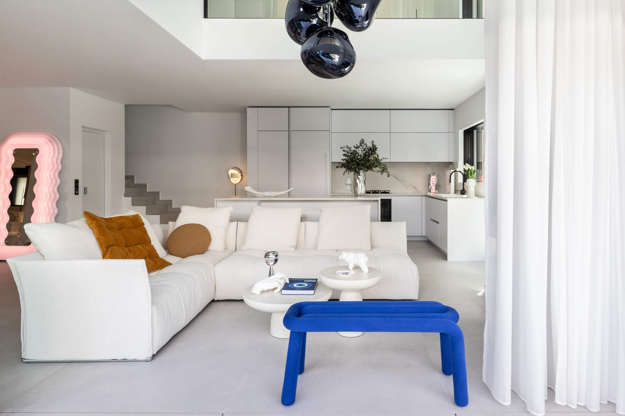 Ένα σπίτι στην Αθηναϊκή ριβιέρα με ατελείωτο φώς και μια λευκή παλέτα που αναδεικνύει όλα τα Design κομμάτια που τοποθετήθηκαν.