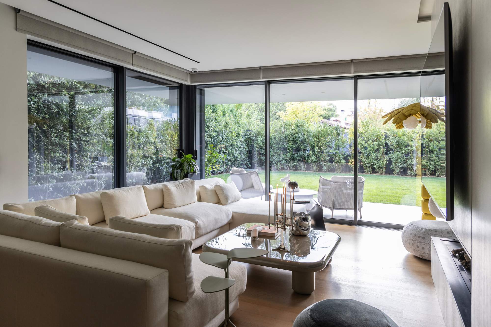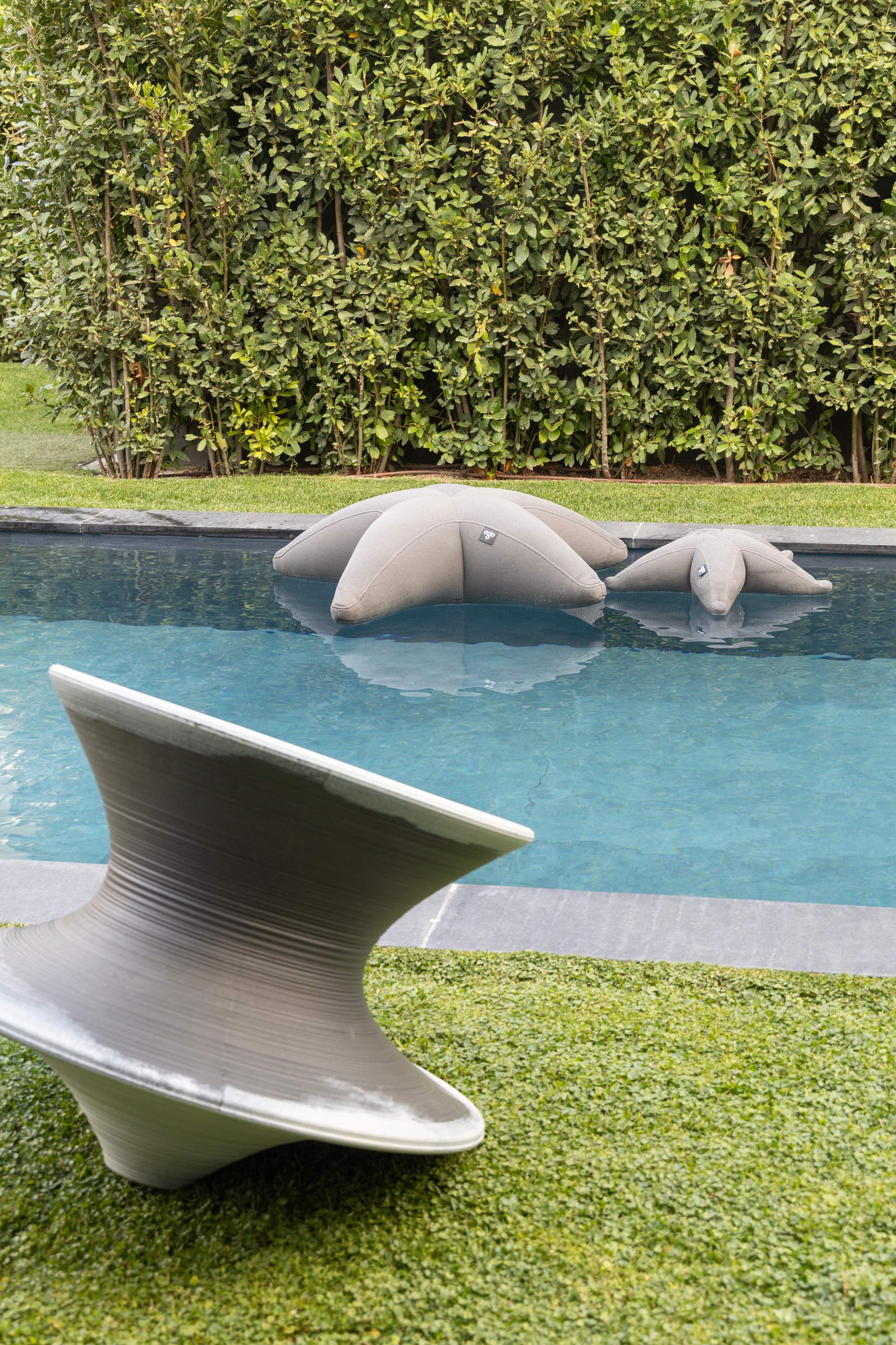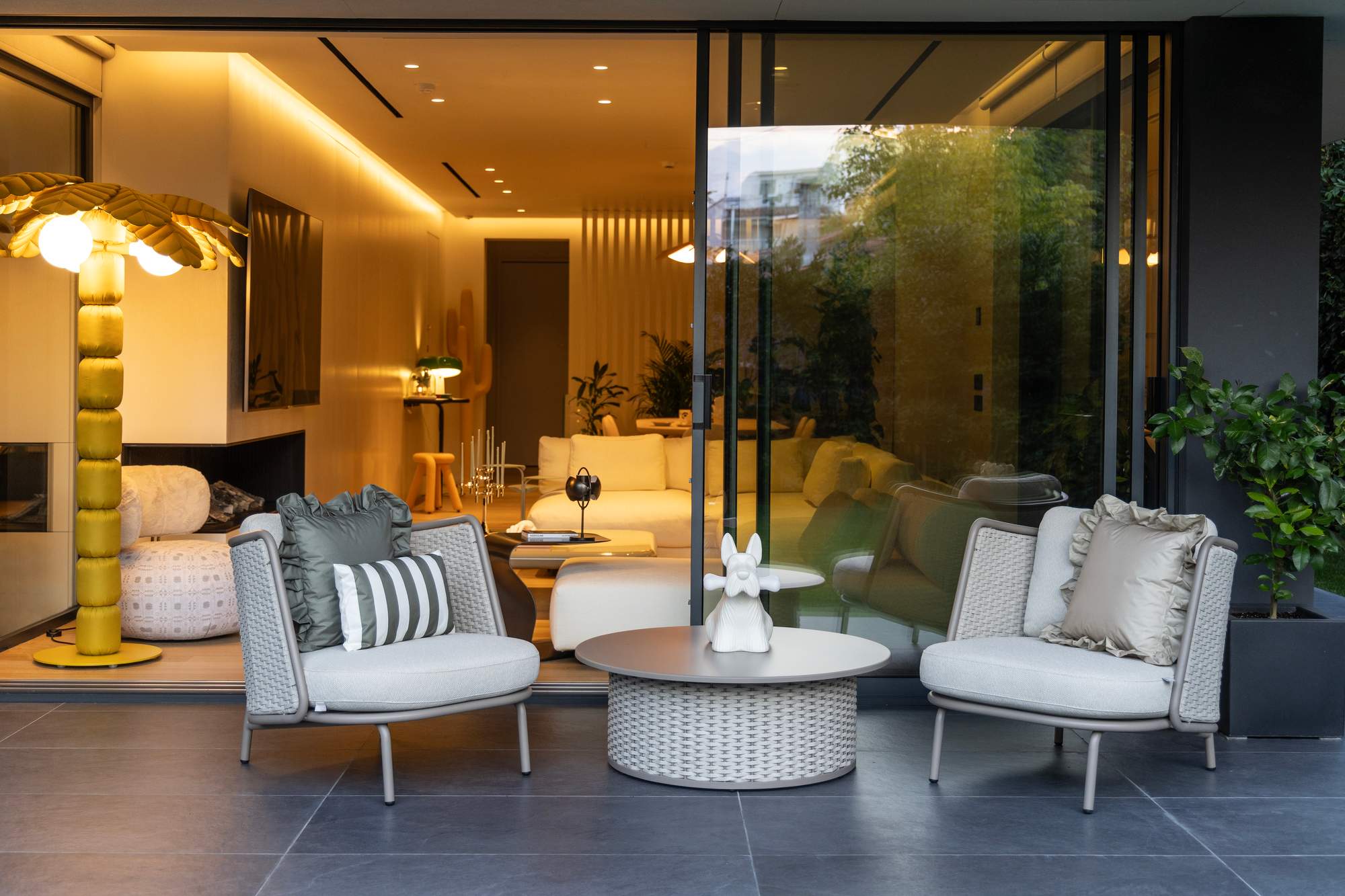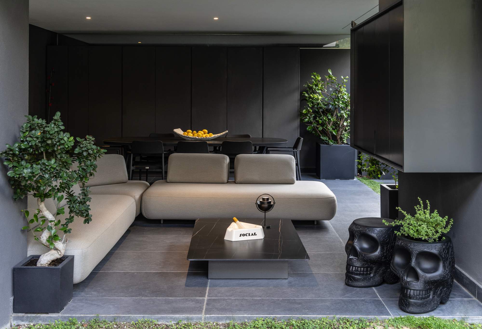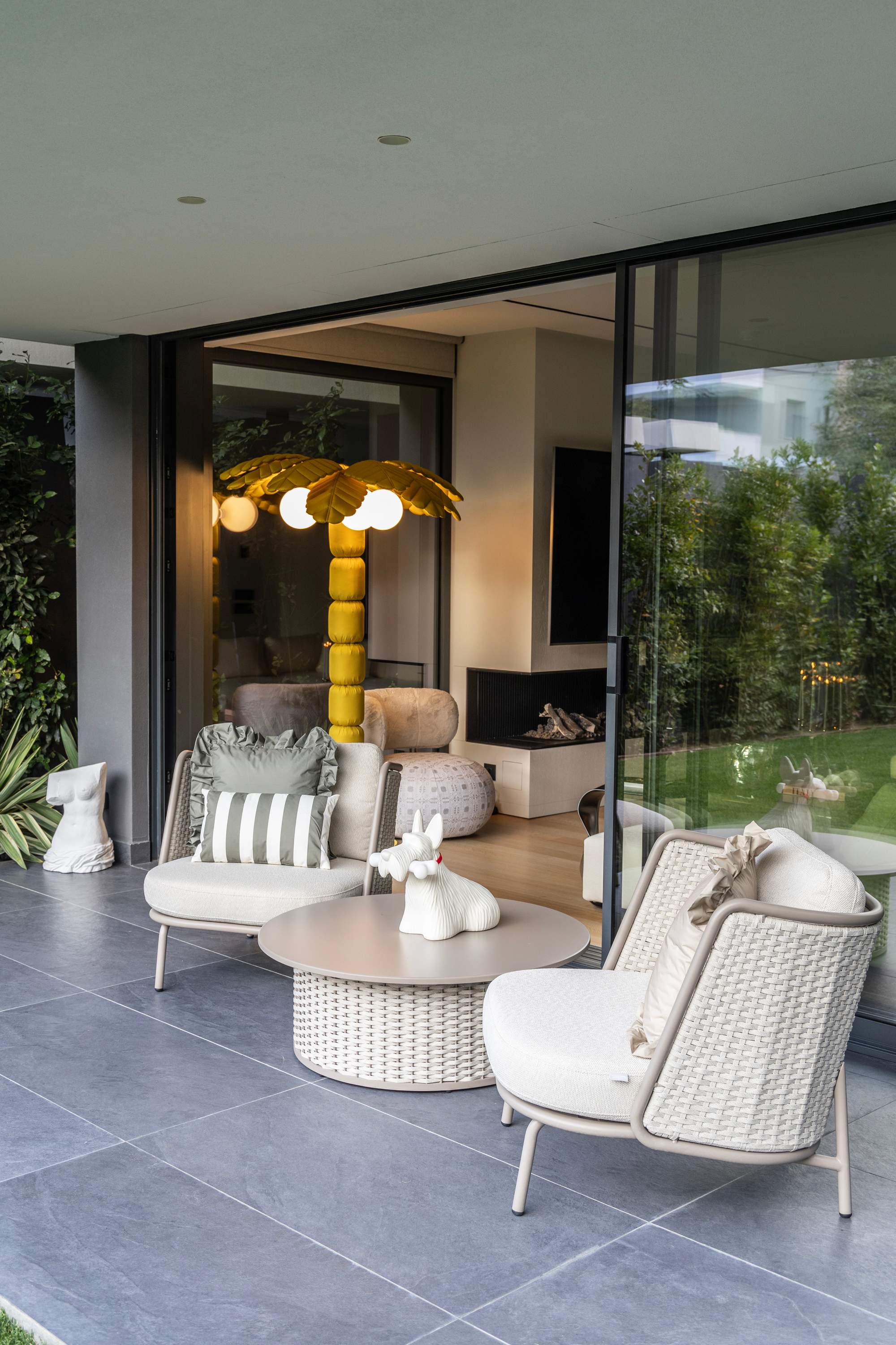 Ιδιαίτερη μέριμνα δόθηκε και στον εξωτερικό χώρο, ώστε να λειτουργεί συμπληρωματικά με τον εσωτερικό. Στο συγκεκριμένο σπίτι, όπου το καλοκαίρι η ζωή μεταφέρεται προς τα έξω και ο χώρος σχεδόν διπλασιάζεται, η συνοχή αυτή ήταν καθοριστική.