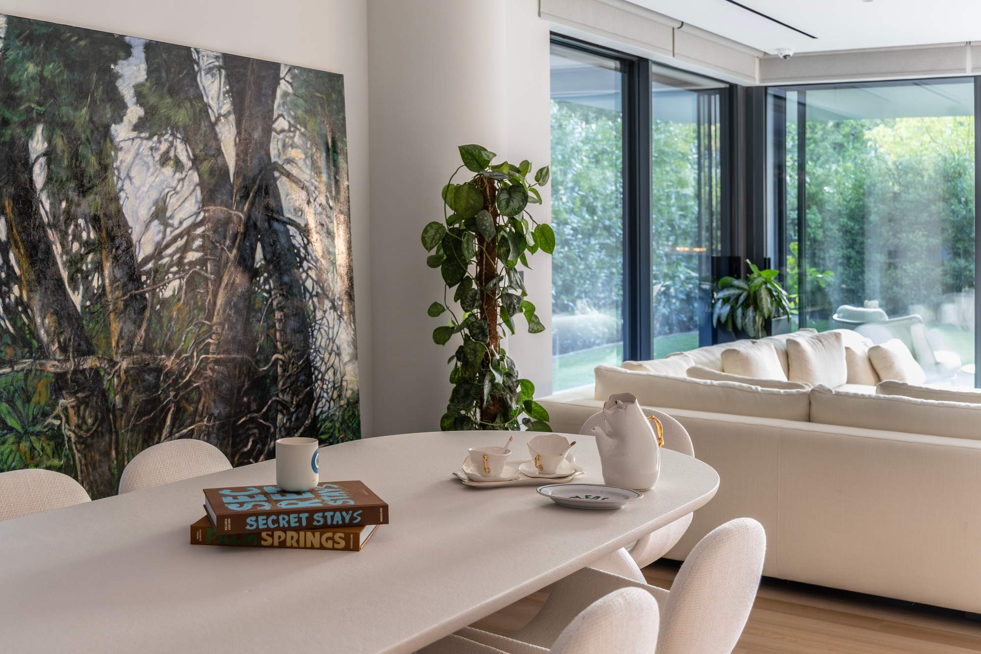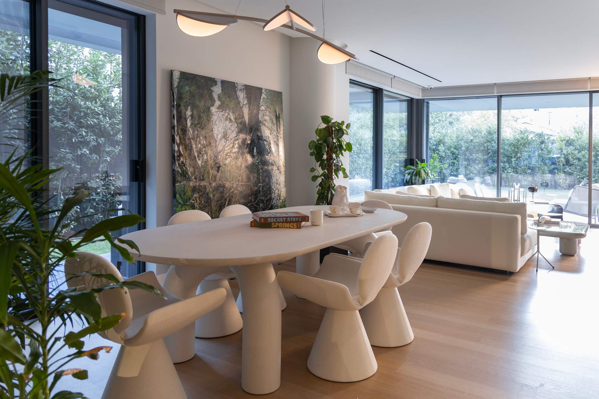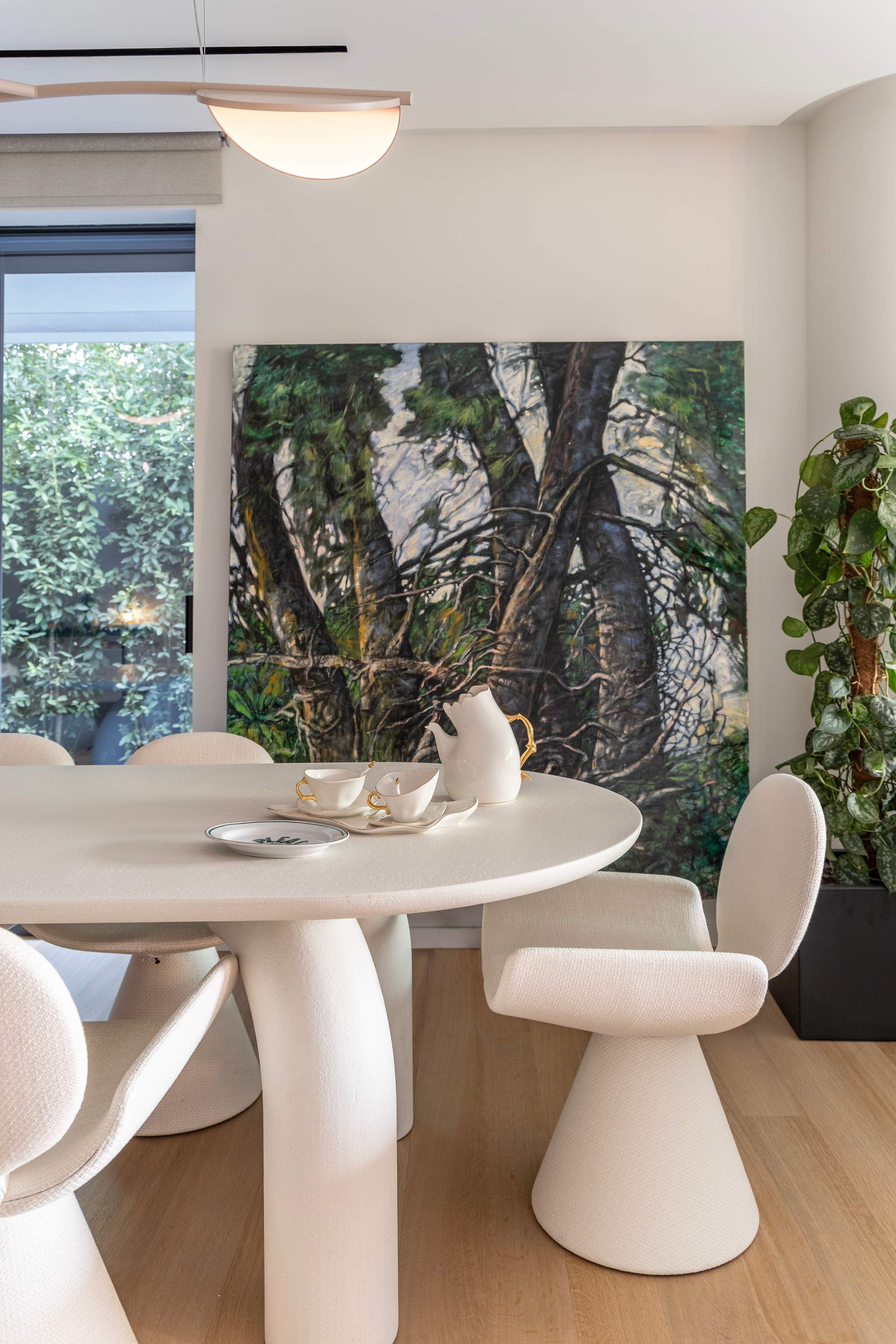 Το CC Pad αποτελεί για εμάς έναν ξεχωριστό χώρο, τόσο λόγω της τοποθεσίας και της αρχιτεκτονικής του όσο και χάρη στην ιδιαίτερη ιστορία των προηγούμενων και των νέων ιδιοκτητών του. Αν και όλα αυτά συνθέτουν ένα σύνθετο σκηνικό, η ουσία αποτυπώνεται στο προσεγμένο mix and match αντικειμένων: στοιχεία με θεατρικό χαρακτήρα συνδυάζονται με ήσυχα, γήινα υλικά και χρώματα στα βασικά έπιπλα, όπως ο καναπές και η τραπεζαρία.