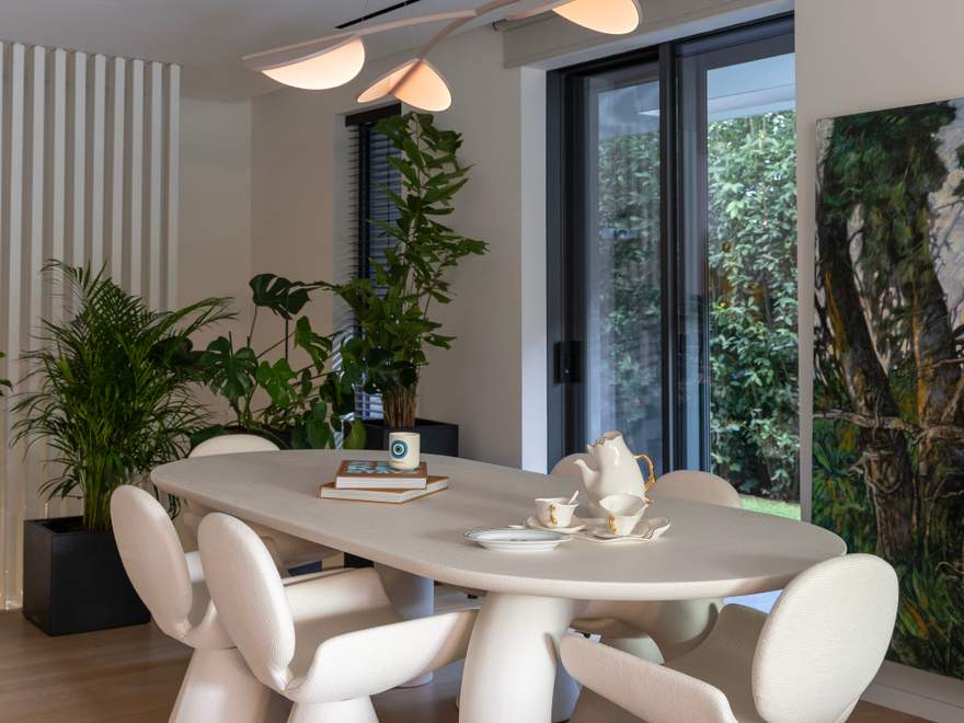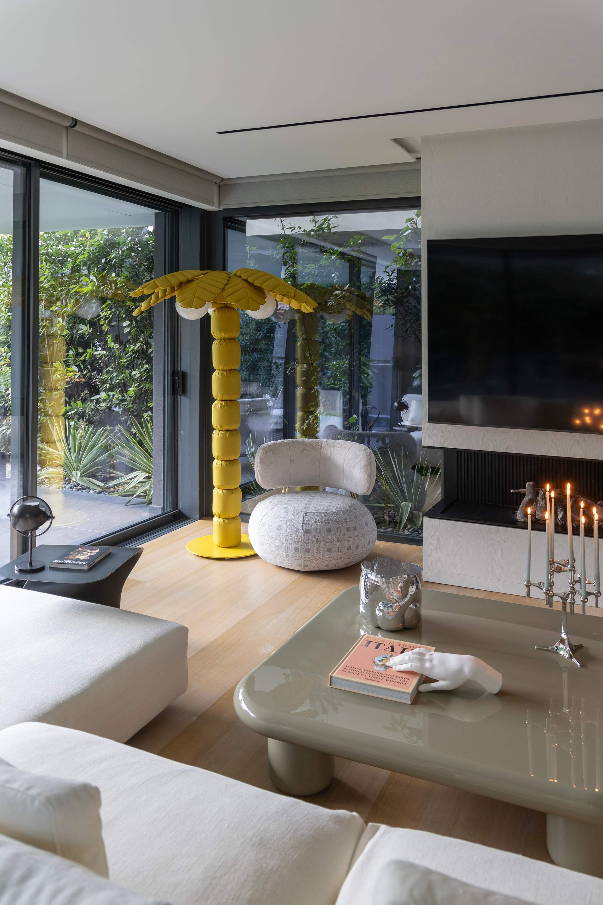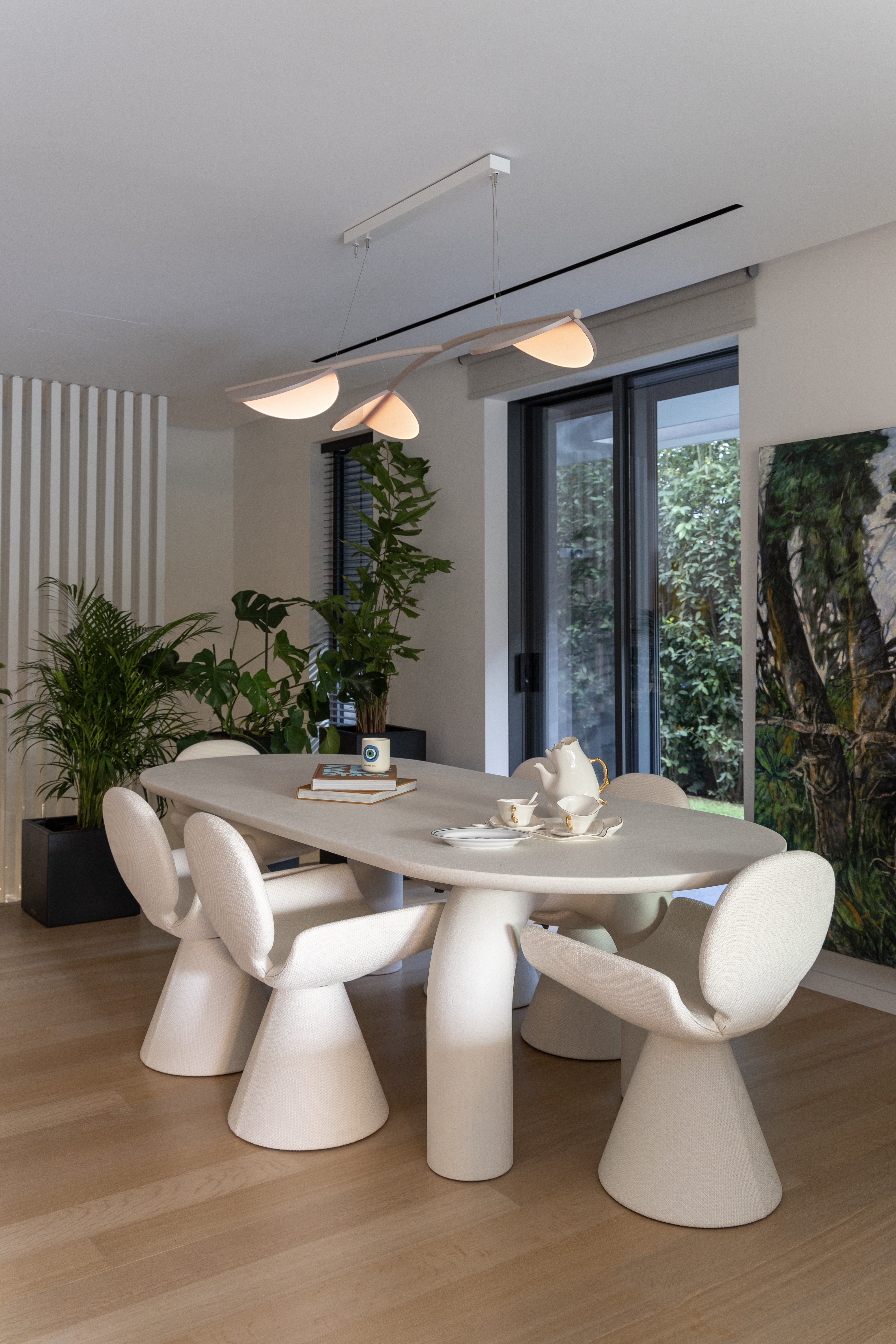 Το CC Pad αποτελεί για εμάς έναν ξεχωριστό χώρο, τόσο λόγω της τοποθεσίας και της αρχιτεκτονικής του όσο και χάρη στην ιδιαίτερη ιστορία των προηγούμενων και των νέων ιδιοκτητών του. Αν και όλα αυτά συνθέτουν ένα σύνθετο σκηνικό, η ουσία αποτυπώνεται στο προσεγμένο mix and match αντικειμένων: στοιχεία με θεατρικό χαρακτήρα συνδυάζονται με ήσυχα, γήινα υλικά και χρώματα στα βασικά έπιπλα, όπως ο καναπές και η τραπεζαρία.