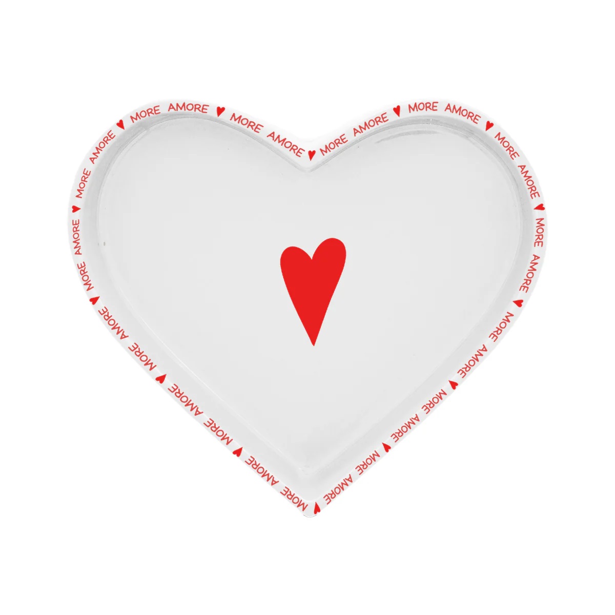 Ceramic trinket tray Heart shaped whit writing "More Amore"