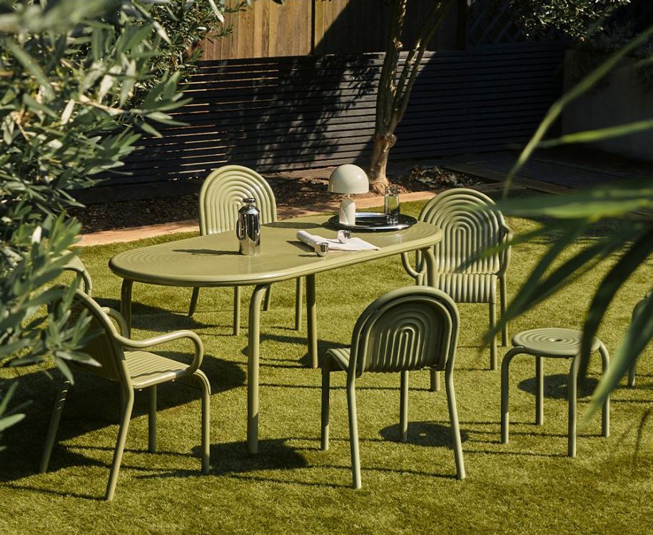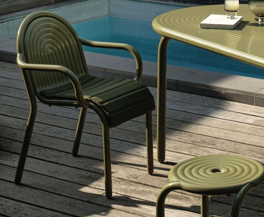 The GROOVE Arm Chair, is part of Tom Dixon's first outdoor collection. Featuring distinctive art deco-style raised ridges, this Arm Chair is crafted from premium aluminium which is corrosive resistant using advanced manufacturing techniques for exceptional durability. The GROOVE collection, refined through over a decade of research, includes versatile chairs, stools, and outdoor cushions, allowing for efficient stacking and storing.