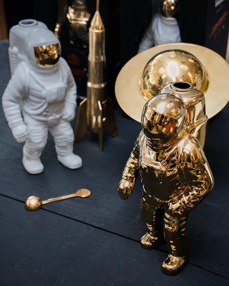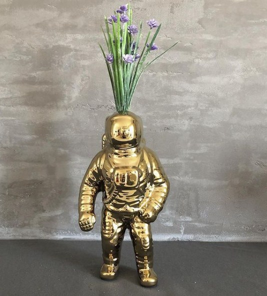 COSMIC DINER galactic collection, branded Diesel Living in collaboration with Seletti, carries on with its conquest of space with STARMAN vase. Diesel Creative Team proposes an astronaut-shaped flower vase, perfect to decorate your table and matching the colourful COSMIC DINER collection of planet-plates. STARMAN embodies Diesel’s pioneering spirit and its enduring will to experience and innovate in the field of design. Original and innovative object, it is carefully refined in all details: the visor of the astronaut is characterized by a peculiar gilding with a vintage effect. STARMAN vase is made of white porcelain and is available with the following dimensions: L.15 D.11 H.28,5.
