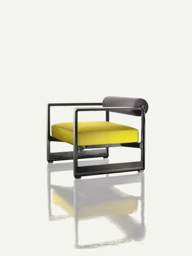 The Brut armchair is made of solid cast iron and available with soft upholstery in selected fabrics.