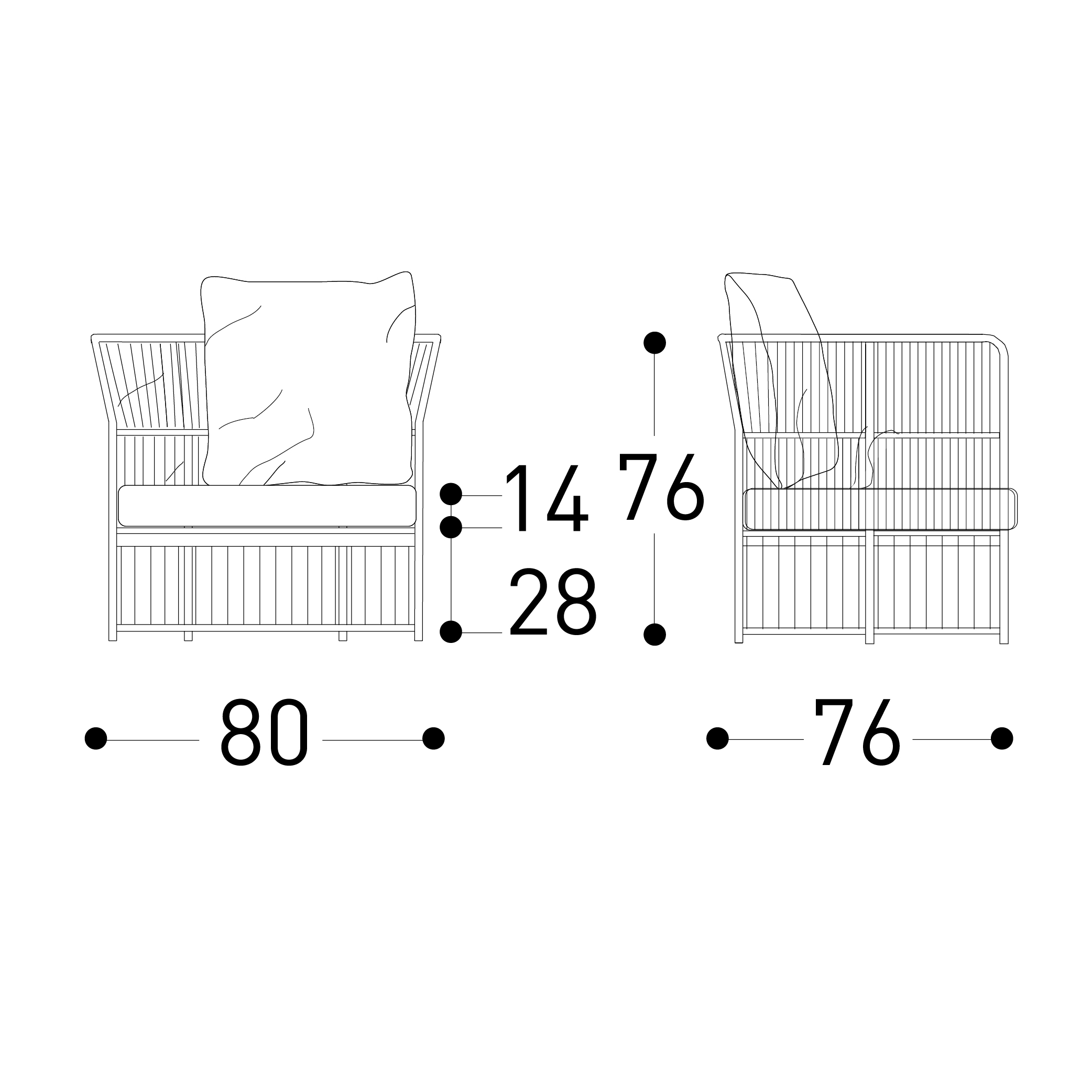 Tech specifications: 80x78xH.76cm