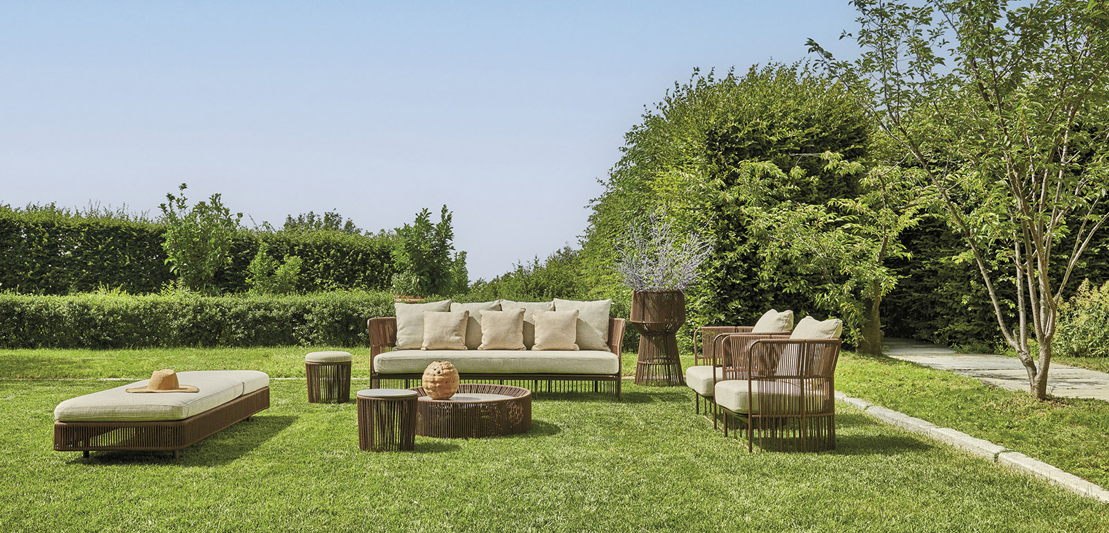 Available upon order with structure in Silk Grey and Perla rope, Grey structure and Grey Brown rope or Metal Bronze structure and VAR#TEX Bronze rope.