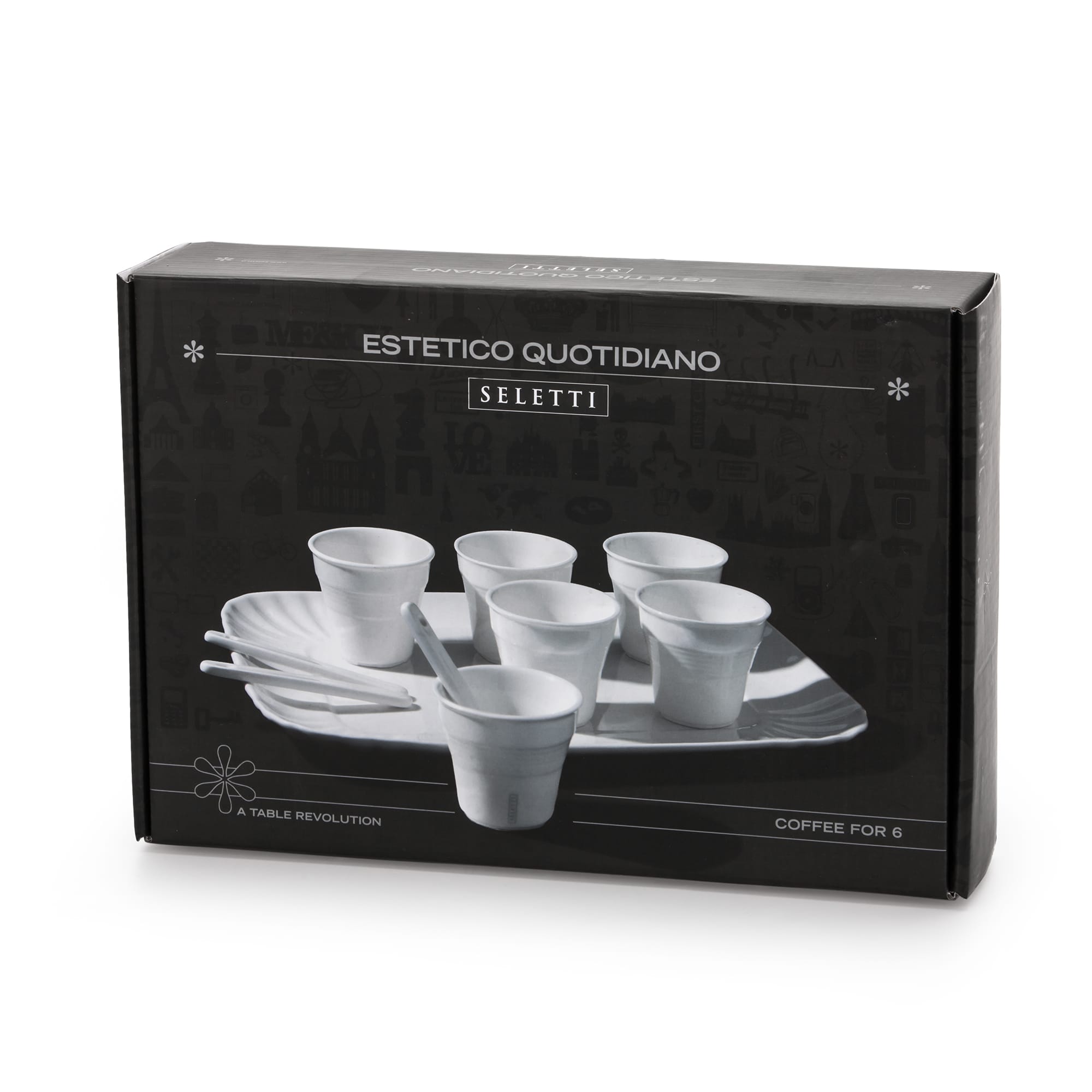 SELETTI ESTETICO QUOTIDIANO PORCELAIN COFFEE SET OF 6 CUPS 6 STIRRERS 1 TRAY