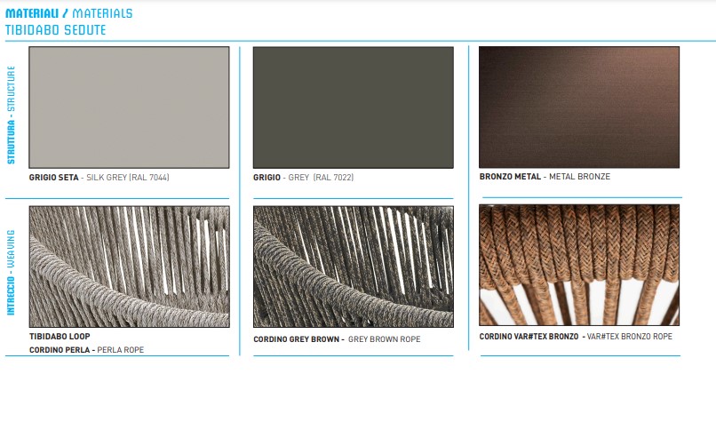 Available upon order with structure in Silk Grey and Perla rope, Grey structure and Grey Brown rope or Metal Bronze structure and VAR#TEX Bronze rope.