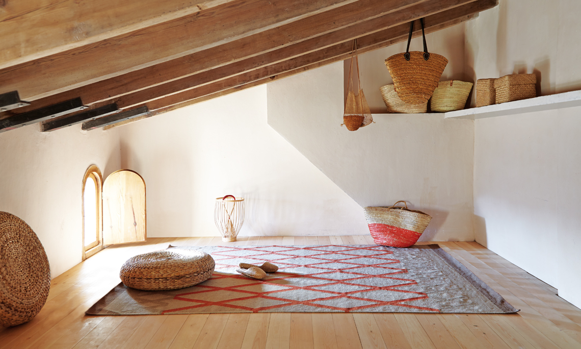 Simple, clean lines combined with a subtle color palette lend the Sioux rug a wonderful aesthetic that can be paired with almost any decor. The intersecting lines of this rug create a wonderful diamond motif and the bright red in the center stands apart from the other colors nicely. Handwoven from 100% wool in the kilim tradition, the Sioux rug is soft, durable and completely reversible.