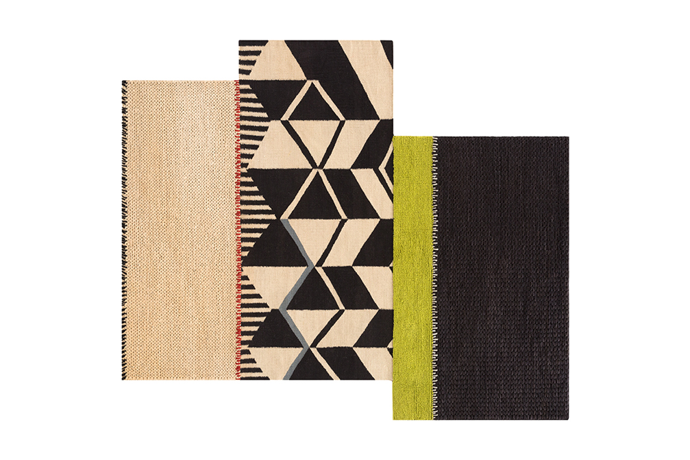 The elegance of nature in the Rustic Chic collection by Sandra Figuerola; handmade using materials like jute and wool that are combined in incomplete patterns, fragmented and asymmetrical with a daring colour palette.