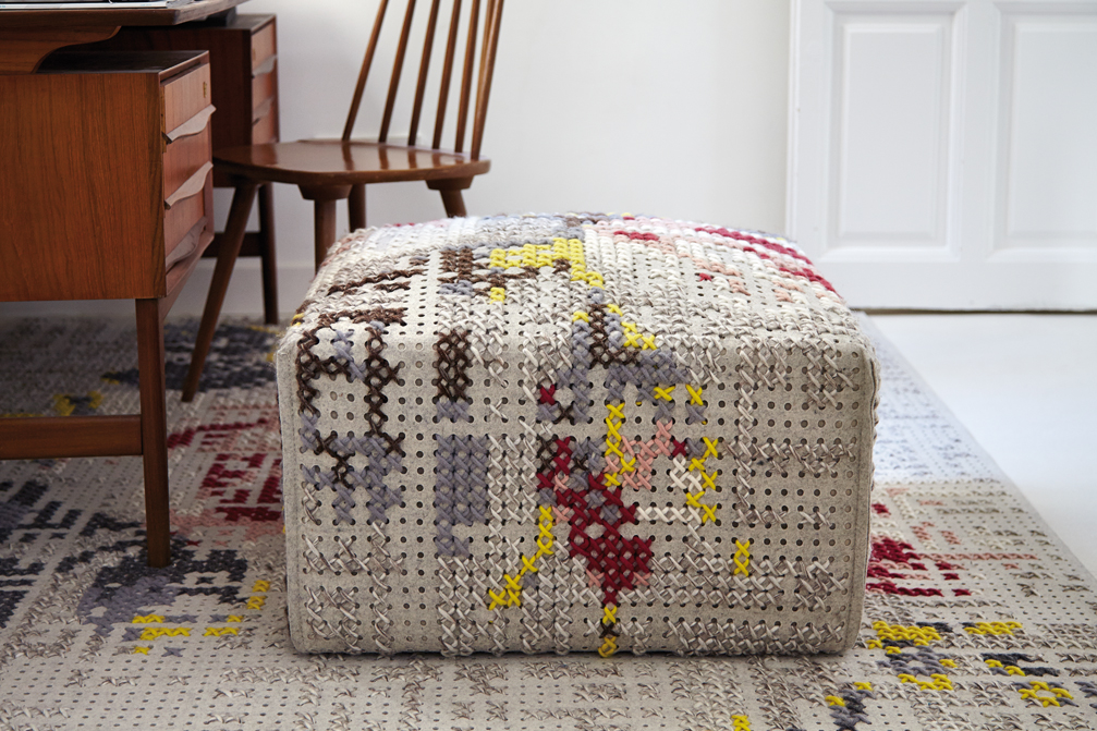 The Canevas collection says it all with the classical honesty of cross stitch. Gan rewrites the textile tradition of cross stitch by framing hand crafted production processes in the context of contemporary design.