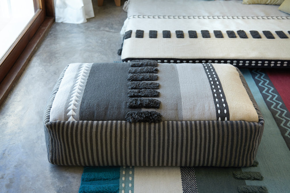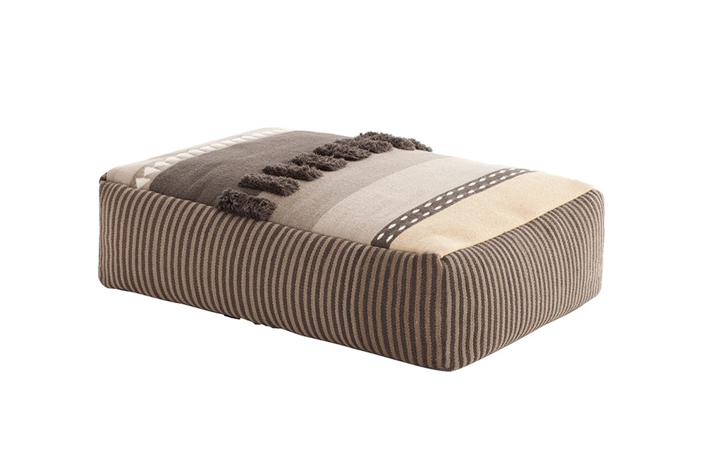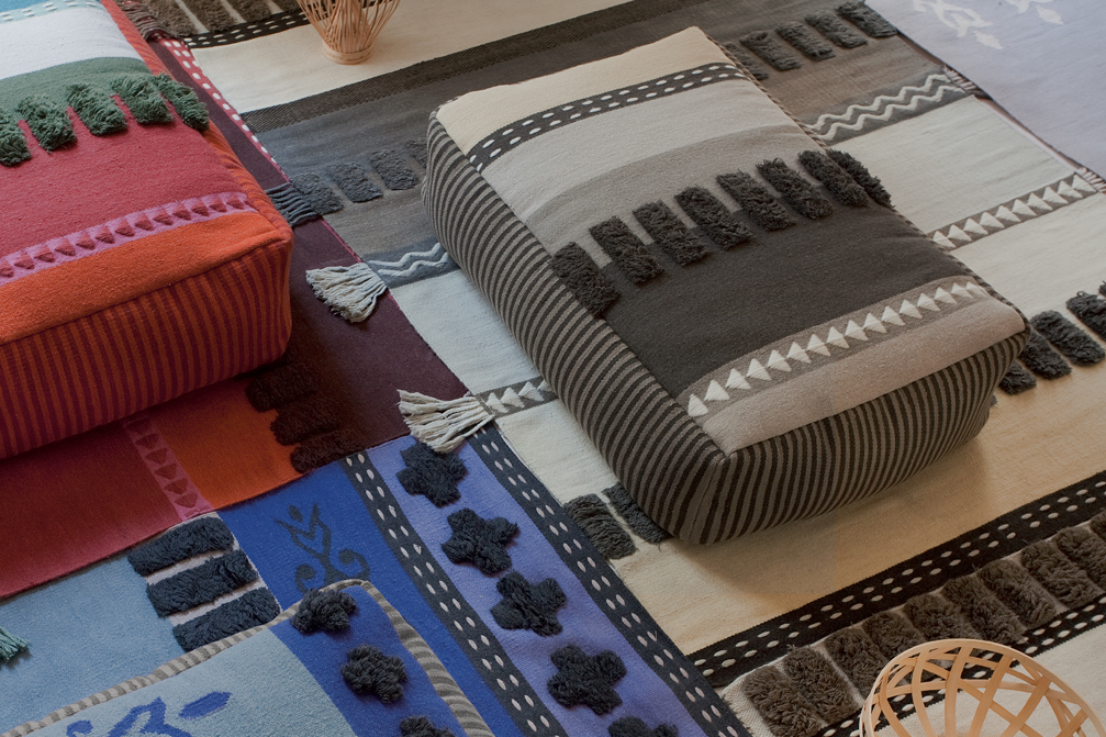 The GLAOUI collection designed by Sandra Figuerola is inspired by Moroccan traditions. It is a colourful design approach that exudes warmth and comfort, where all pieces come together around a central focus: the rug.‎ GLAOUI includes poufs and rugs made using craft techniques and woven over a loom with knots and embroidery. Alexandra pouf is available in dimension 110x72xH.32cm and in 2 versions Colors and Neutral.