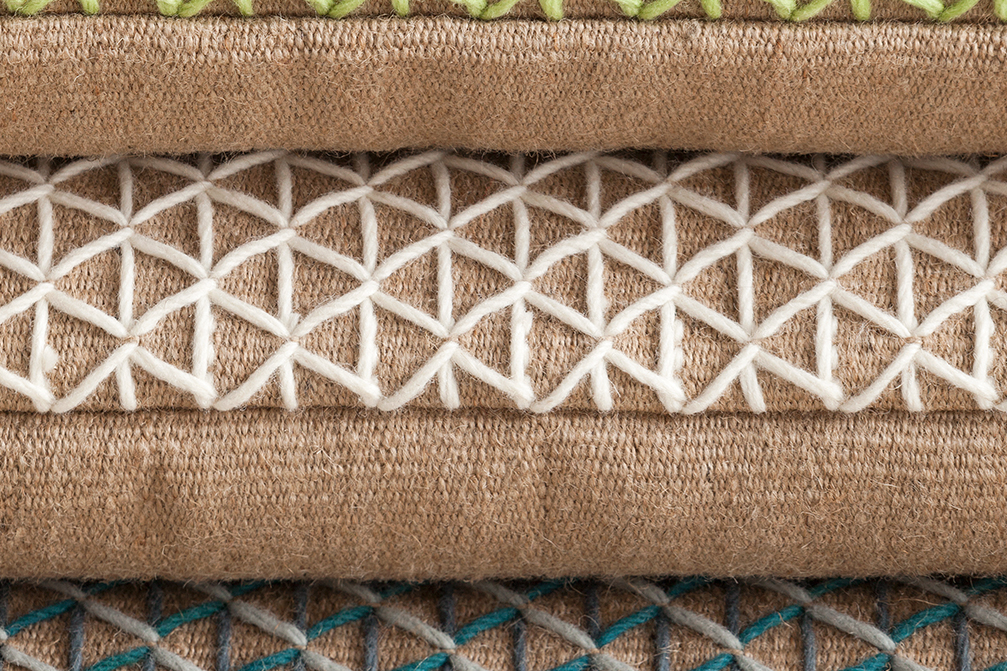 strength. A natural material (jute) forms a blank canvas onto which a