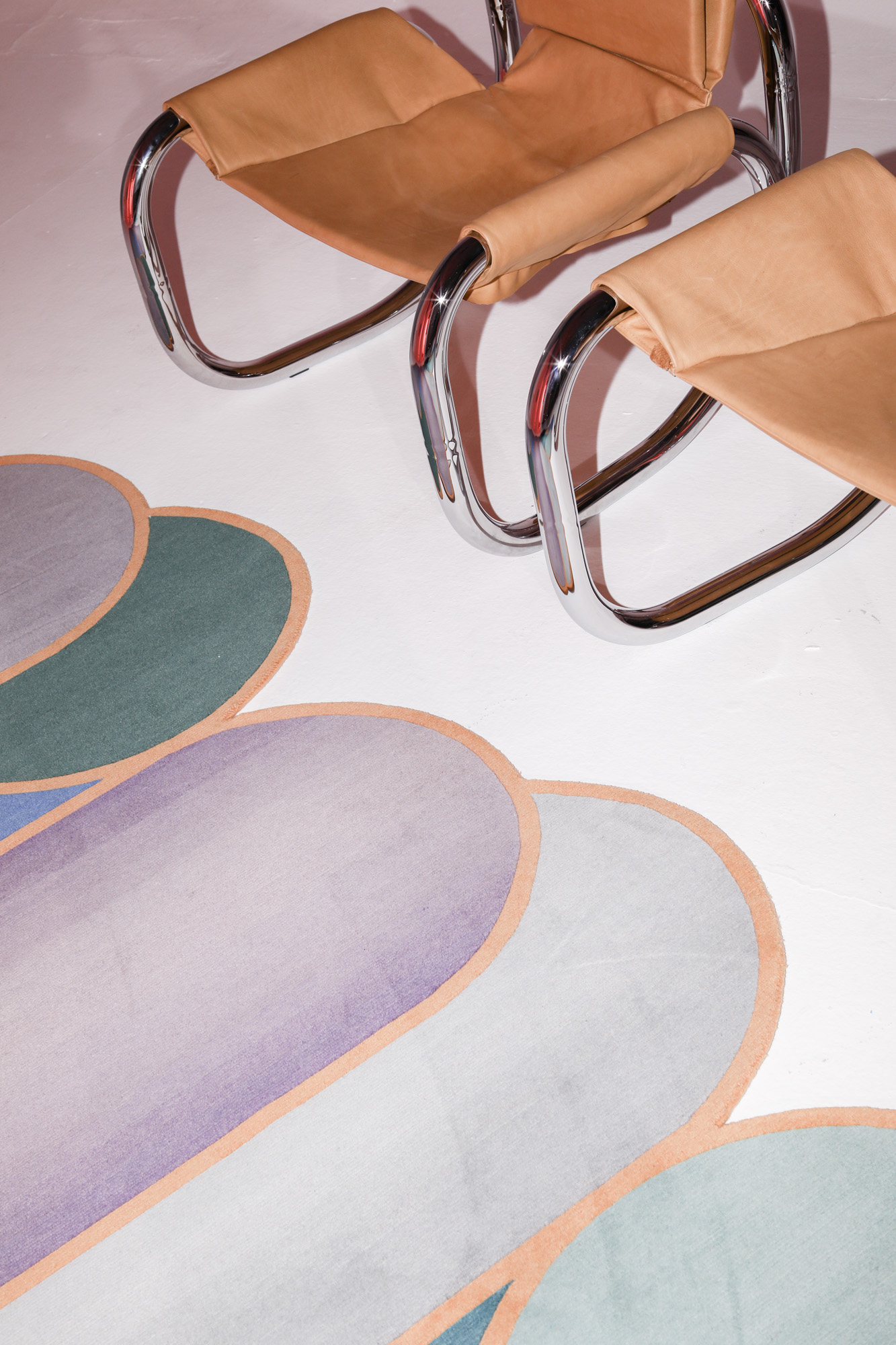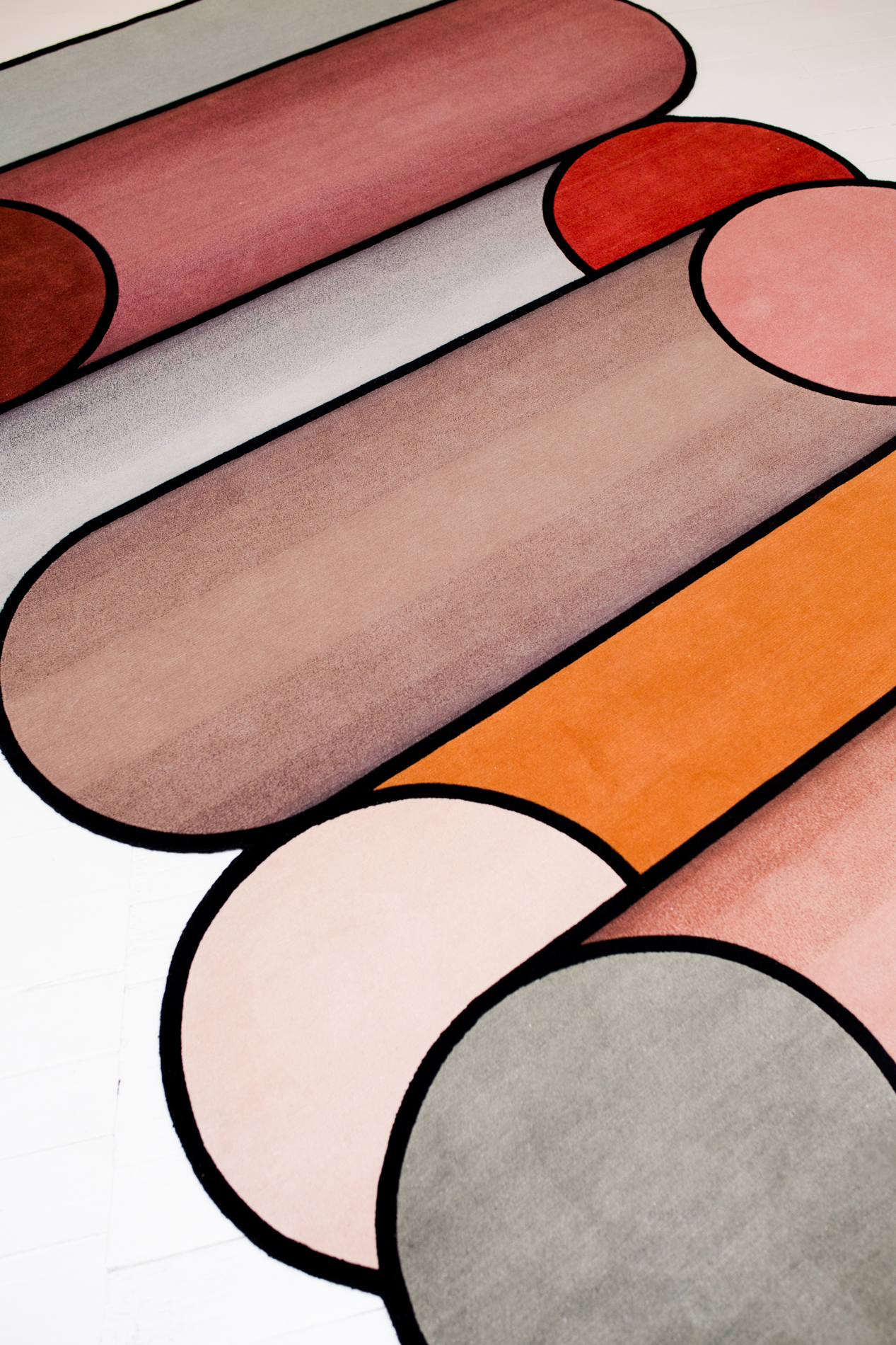Rotazioni plays on the repetition of overlapping cylindrical forms that emphasize the circle as the matrix of the design. A scale of pastel colors and chromatic contrasts insinuate the gradient on the surface of the cylinders creating a three-dimensional effect. This enhances the volume and dynamic composition of the design: from this "Rotazioni” which translated means "Rotations” was born.
