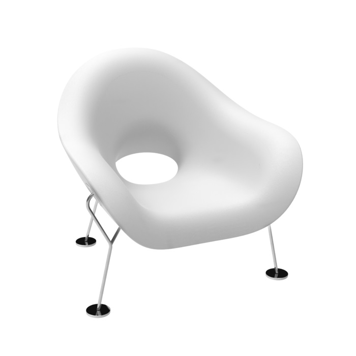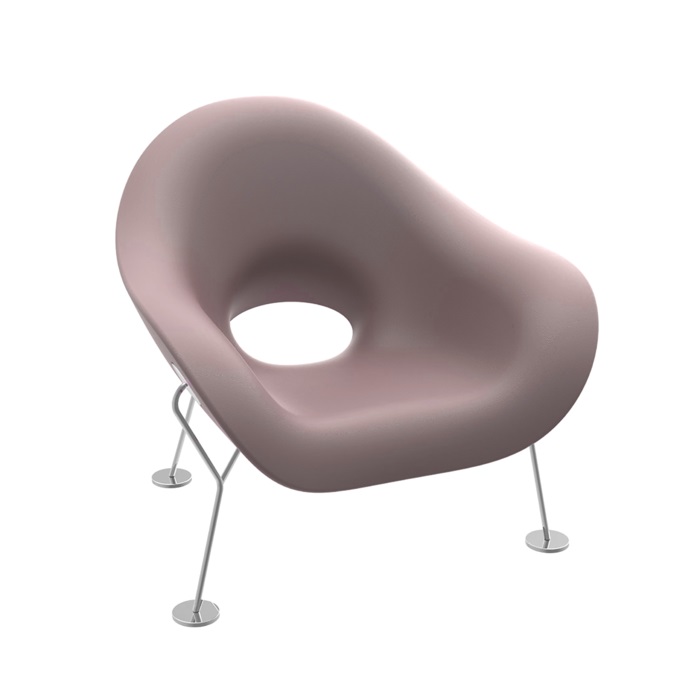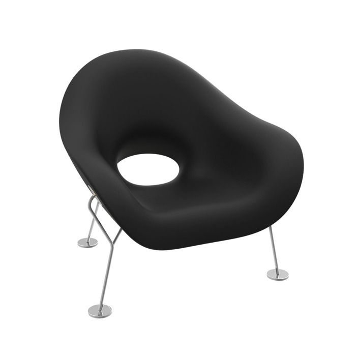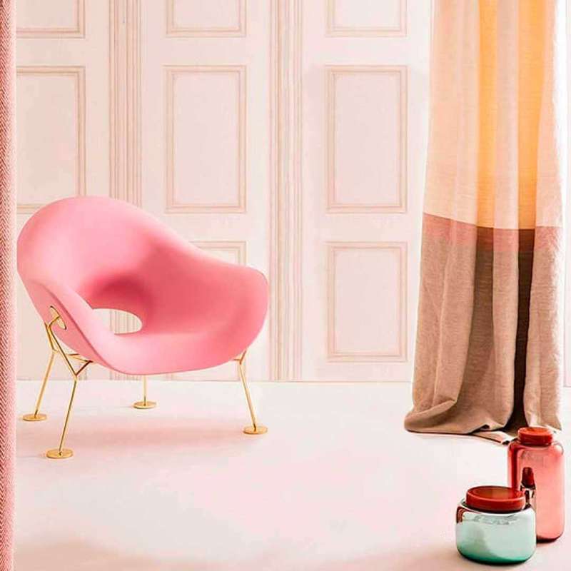 Unbridled and light at the same time, the Pupa armchair supports and suspends its enveloping volume on a base with a thin chrome structure, which enhances its sensual elegance. Its comfortable shell is available in black, pink and white.