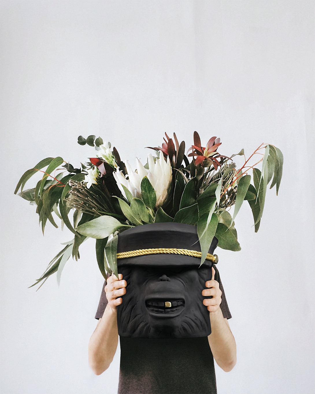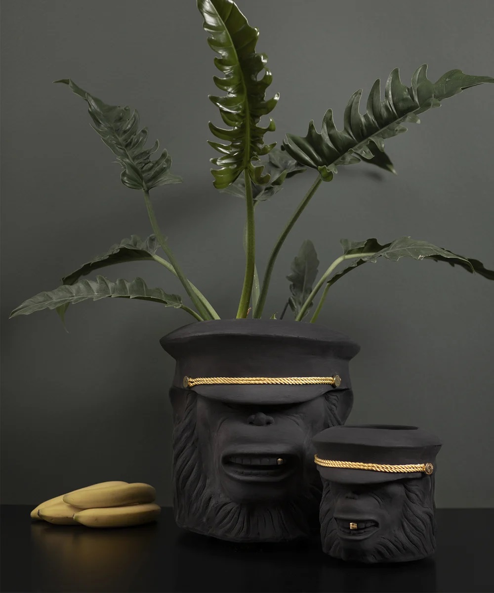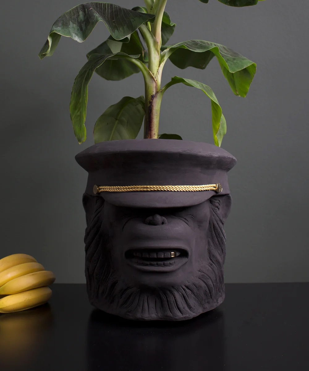 There’s a new sheriff in town! This pot exudes attitude, confidence and is definitely what we call a true piece of art. The chimpanzee officer is made entirely of terracotta, the twisted gold cord in the cap, the brass buttons and tooth are an elegant touch.