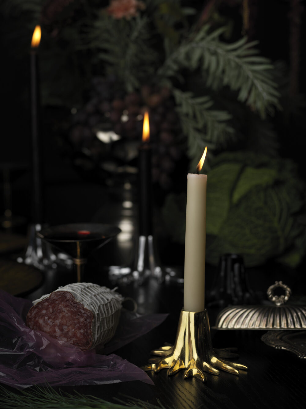 A candle holder that compliments your Christmas tree stand or works perfectly fine as a stand-alone piece of art.