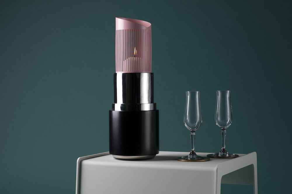 A lush and fancy outdoor lantern. Its shape as a giant lipstick will spread a beautiful light in the darkness, in the garden, on the terrace, on the balcony but also indoors. It suits both torch candles as well as pillar candles.